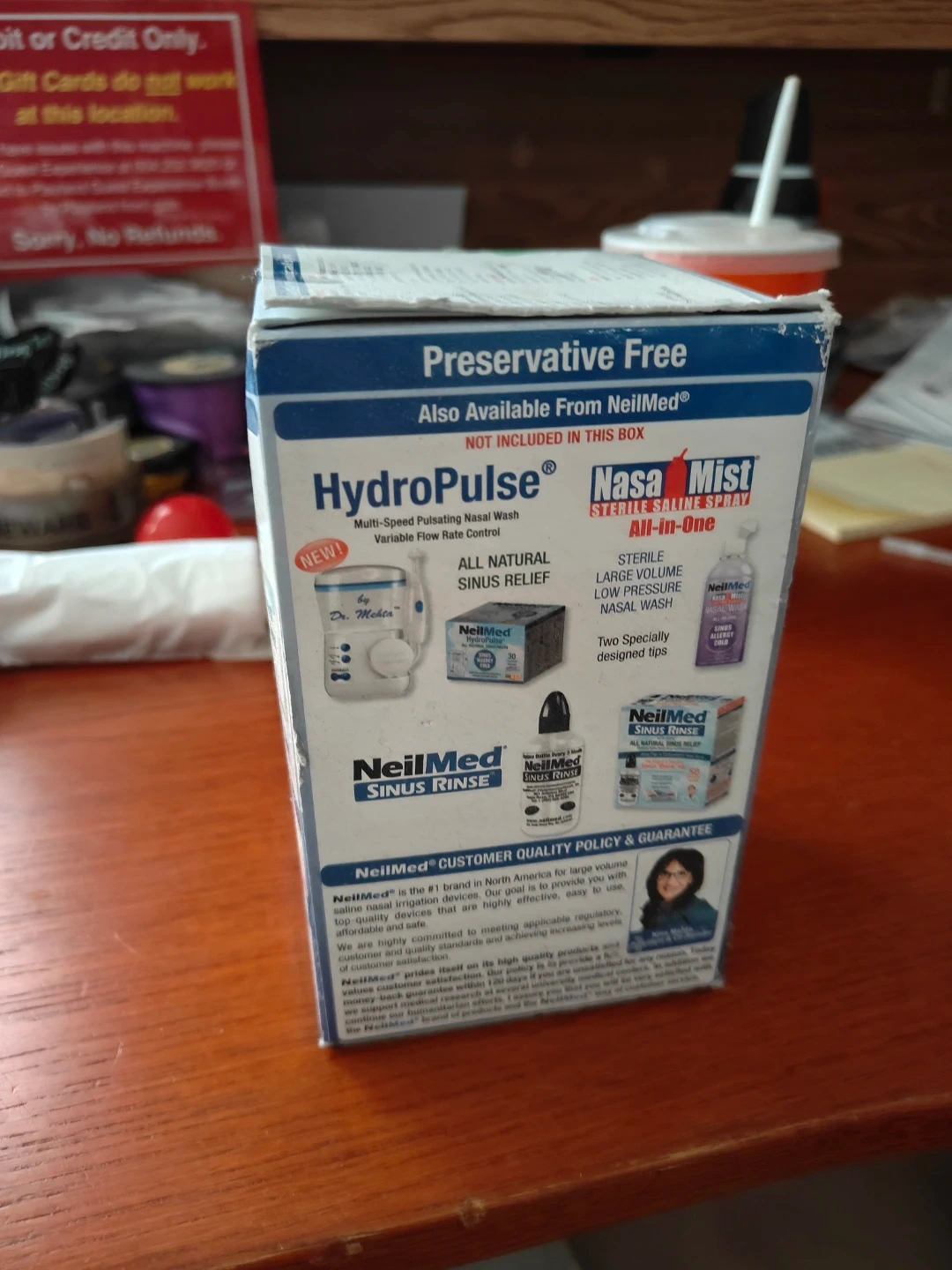66Selling a NeilMed NASAFLO Neti Pot for all natural sinus relief! It's preservative free and helps with nasal rinsing. The box also mentions other available NeilMed products such as HydroPulse and NasaMist.