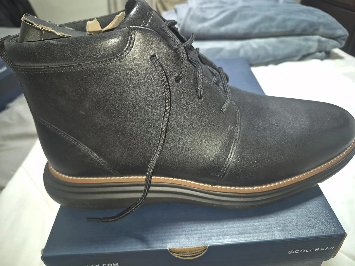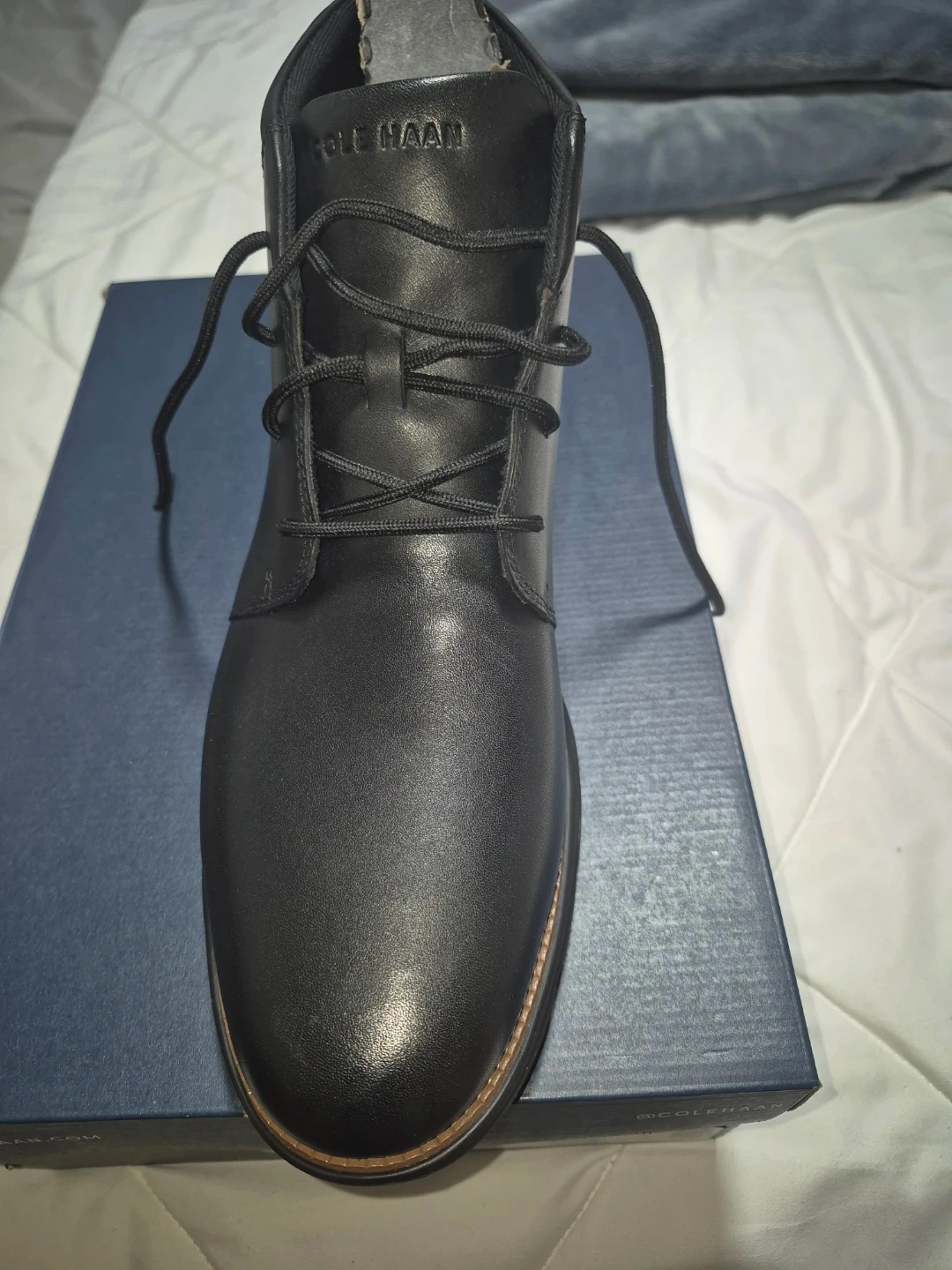 Selling a pair of Cole Haan black leather boots. They come with the original box. Great for everyday wear!