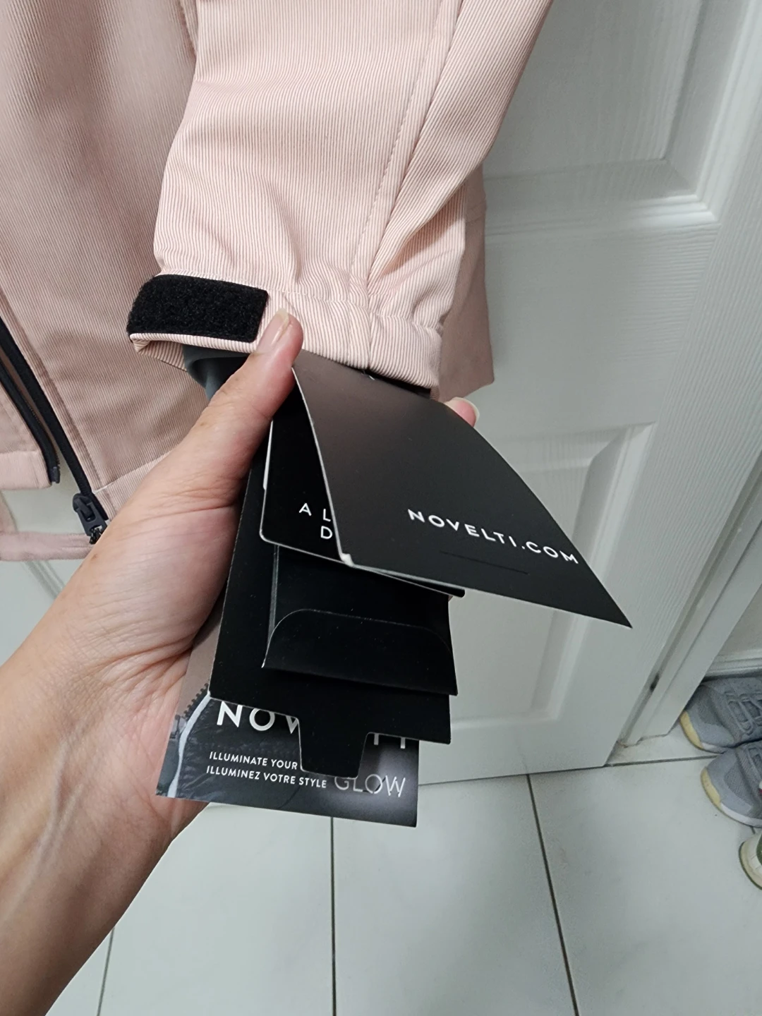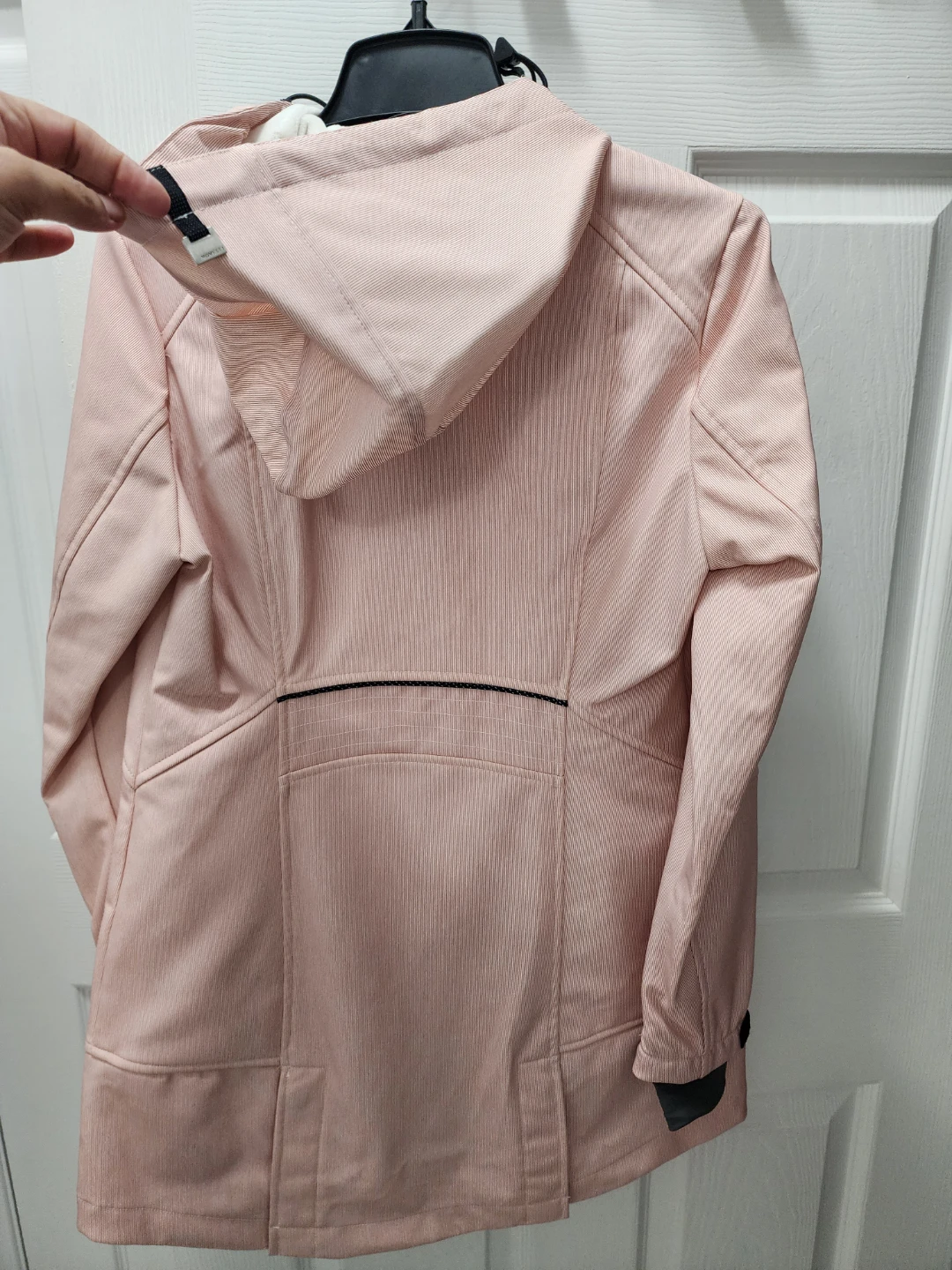 Selling a new Novelti softshell jacket in a lovely pink colour! It's a size small and in great condition. Perfect for layering or wearing on its own during milder weather. It features a hood and several zippered pockets. Great for outdoor activities!