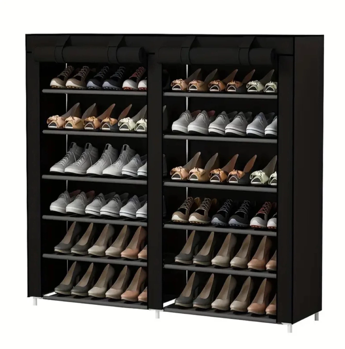 Keep your shoes neatly organized with this portable 7-tier double shoe rack organizer! It's perfect for entryways, closets, or anywhere you need extra shoe storage. It can hold many pairs of shoes and is easy to assemble. Available in two colours: Black and Grey.