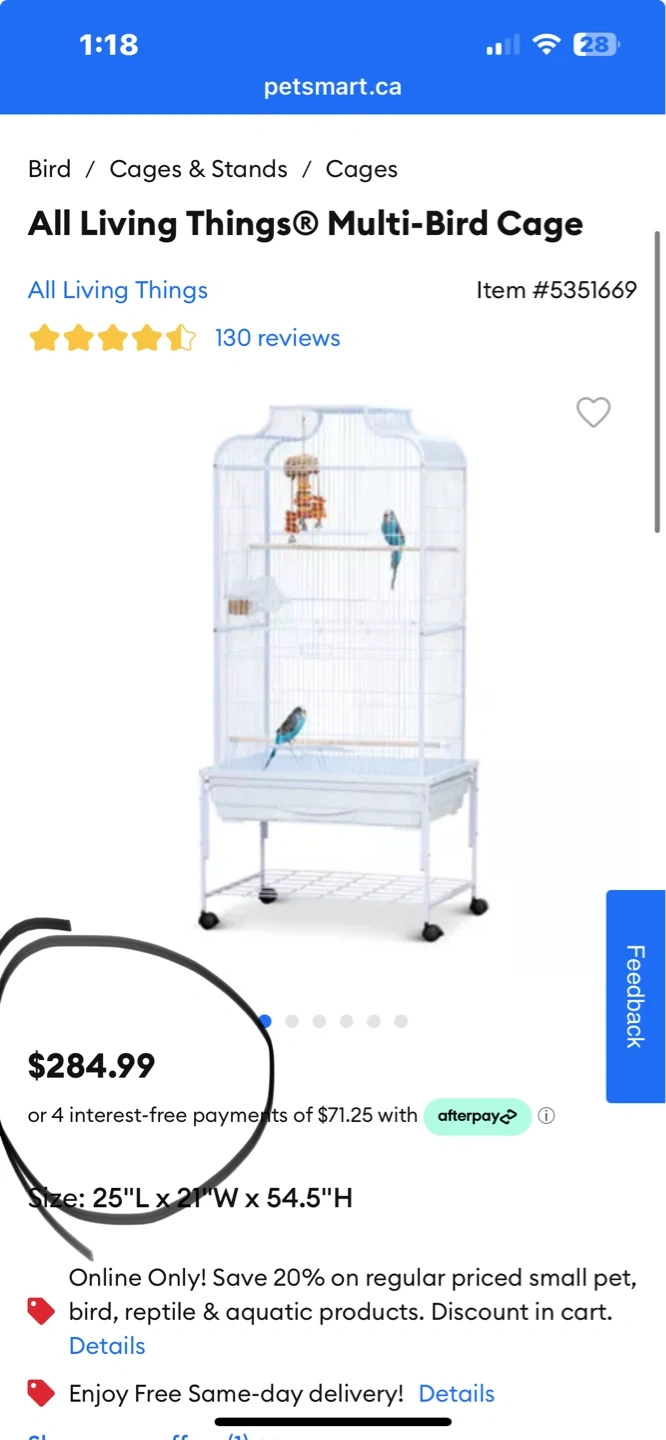Selling a bird cage that's like new! It comes with all the toys you see in the picture. It's in great condition and ready for a new feathered friend. Bought from pet smart for 319.00 incl taxes.