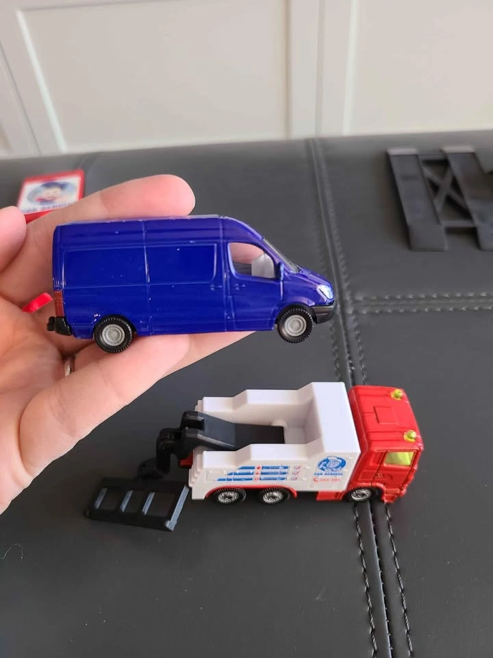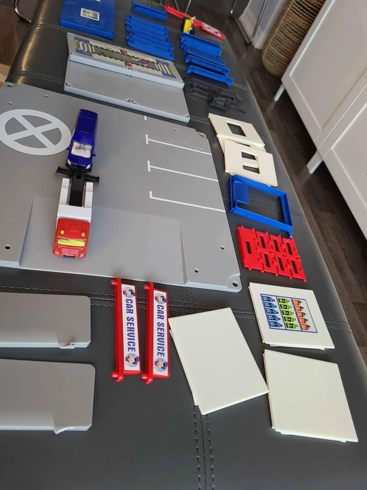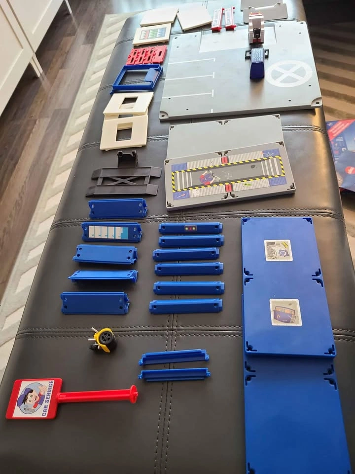 65Siku World car service garage set up. Includes 2 cars (van and tow truck). NO other cars included. Everything pictured is in the box. 2 missing green pieces (see pictures of the instruction manual where the missing pieces are circled). Also, 2 chipped pieces. Pet free, smoke-free home. Pickup only. LOCATION: Lake Shore Blvd W and Long Branch Ave in Etobicoke