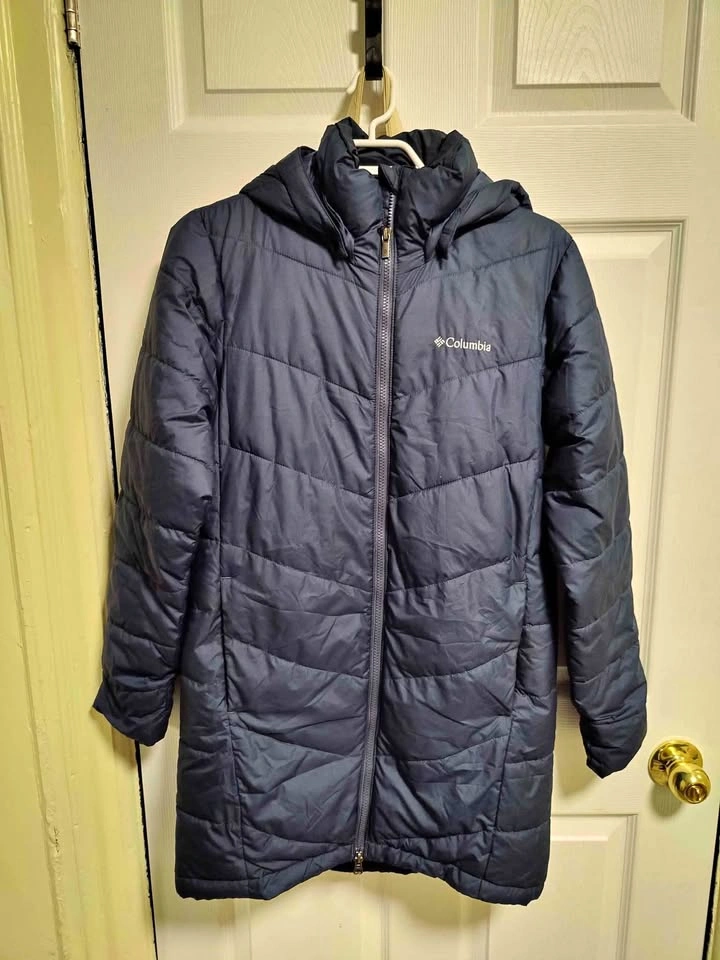 Navy blue, gently used, and in excellent condition. Warm, lightweight, and perfect for cold weather without feeling bulky. Worn only a handful of times.
