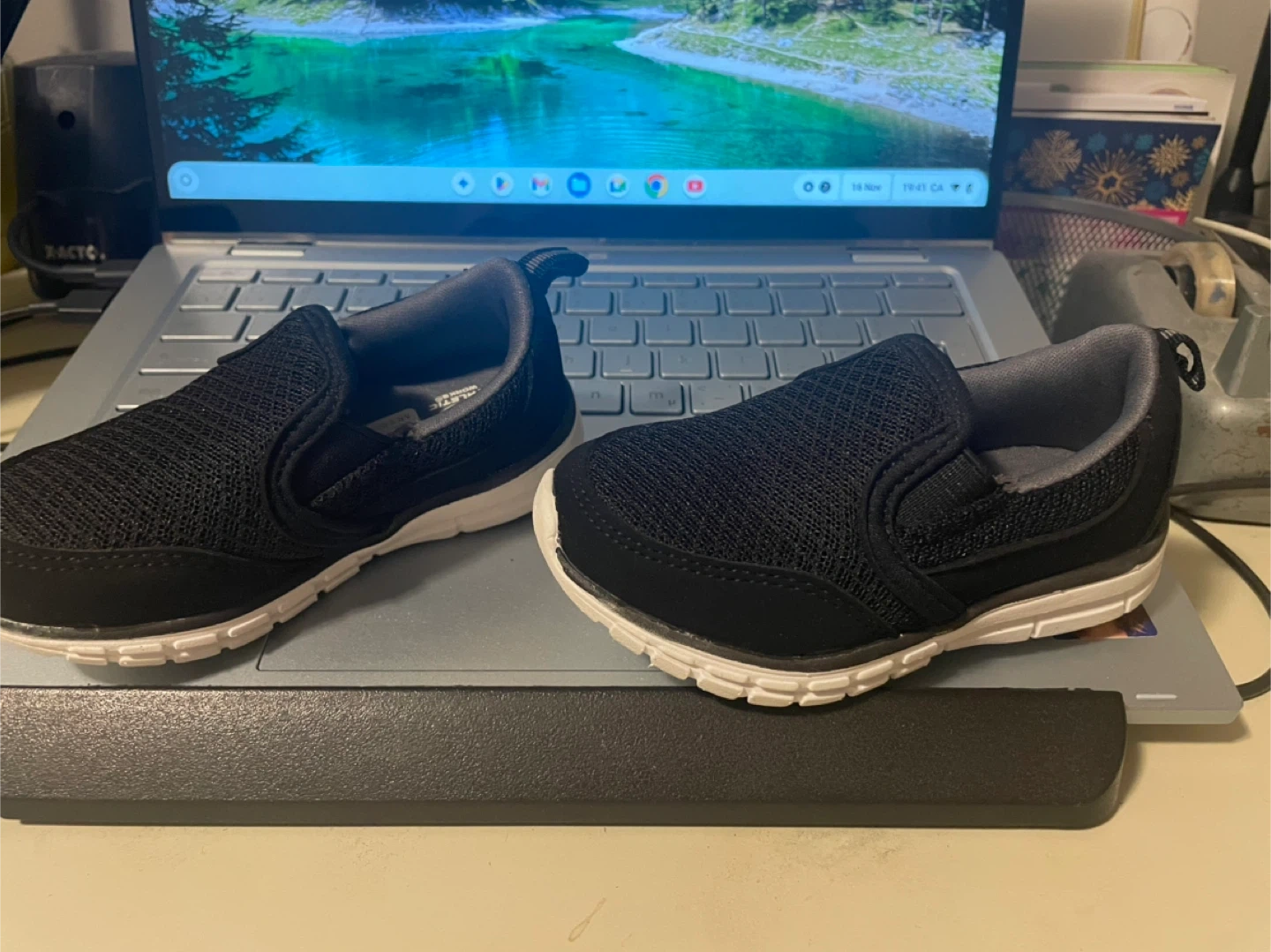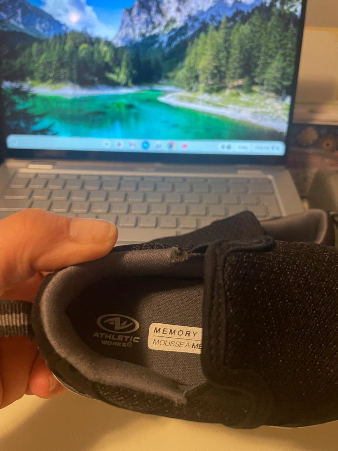 Selling a pair of Athletic Works kids' slip-on shoes in black! They're a size 6 and feature a memory foam insole for extra comfort. Great for everyday wear!