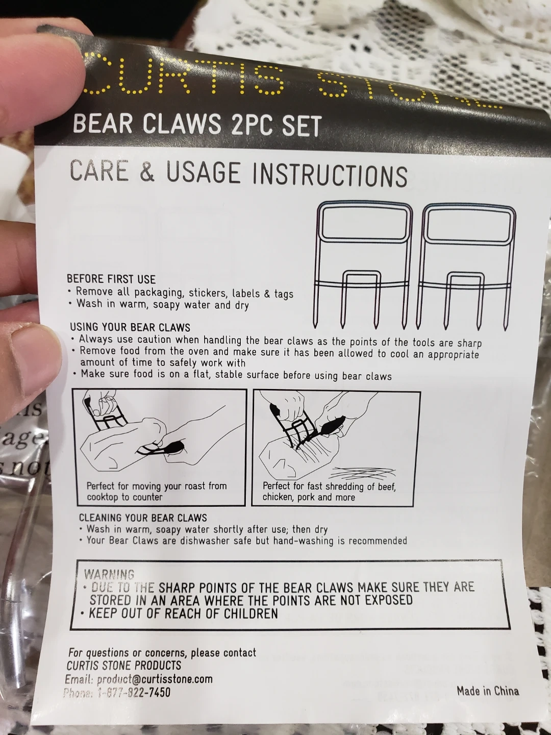 I'm selling a brand new Curtis Stone Bear Claws 2PC Set! These are perfect for moving your roast from the cooktop to the counter and for fast shredding of beef, chicken, pork and more. They're dishwasher safe, making cleanup a breeze. In a box.