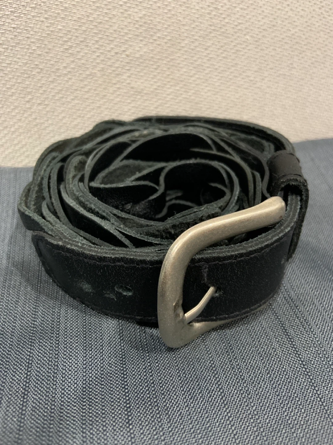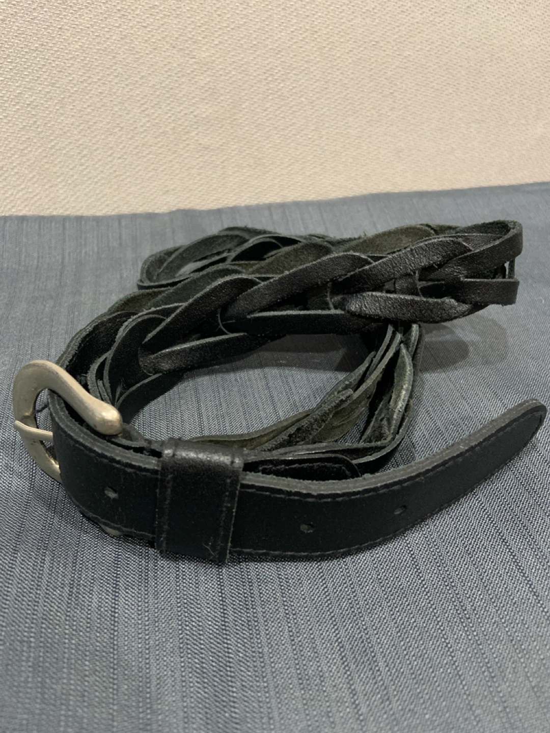 Selling a genuine vintage leather braided belt in size L/G. The leather is so soft with a natural suede backing.