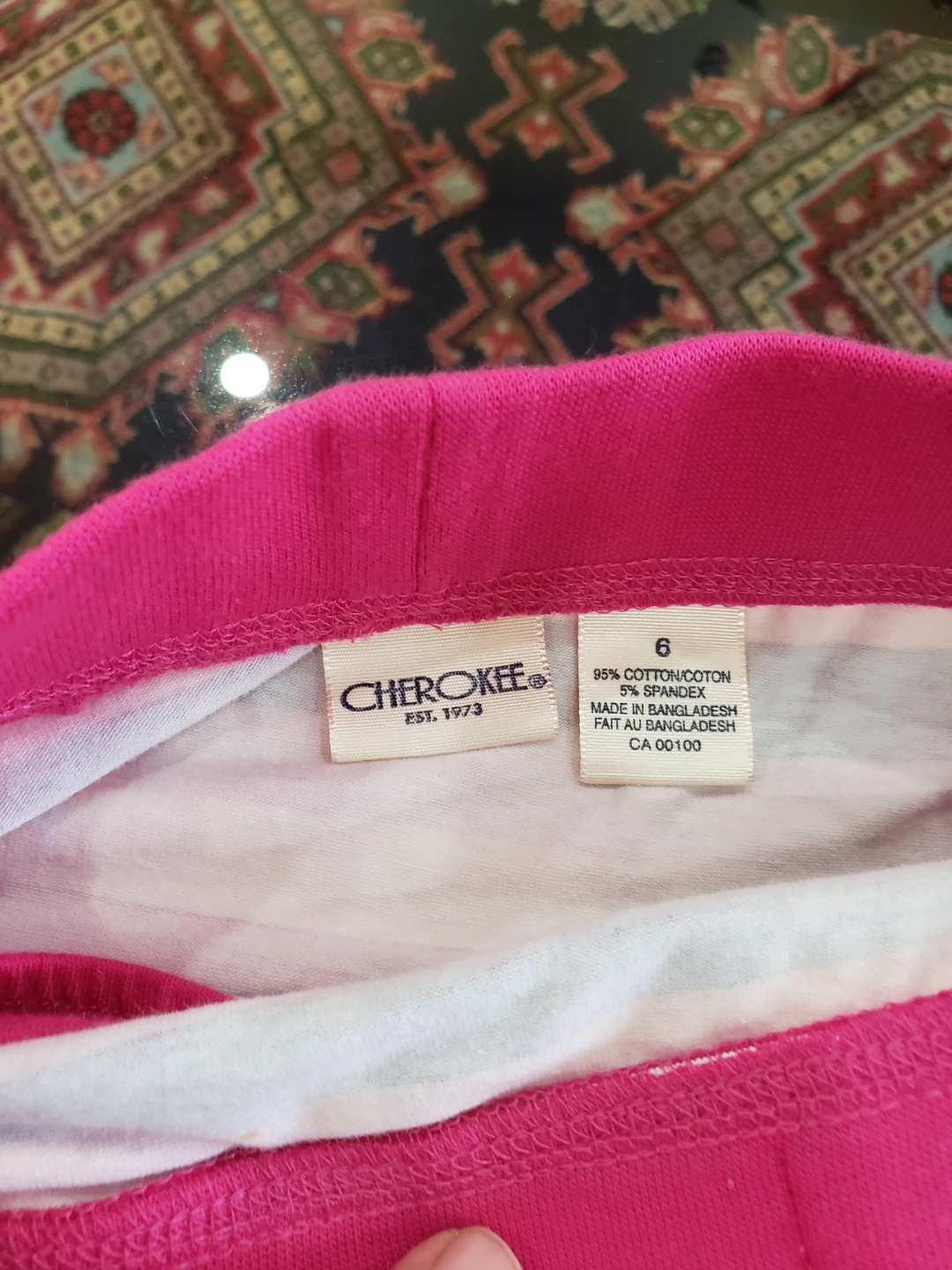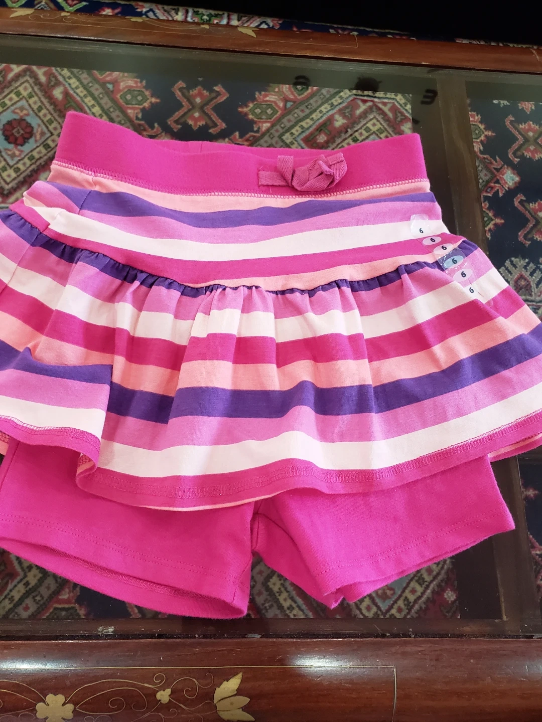 Cute Cherokee skirt and shorts set in size 6! It's made of 95% cotton and 5% spandex for a comfy fit. The set features a fun striped skirt with matching pink shorts