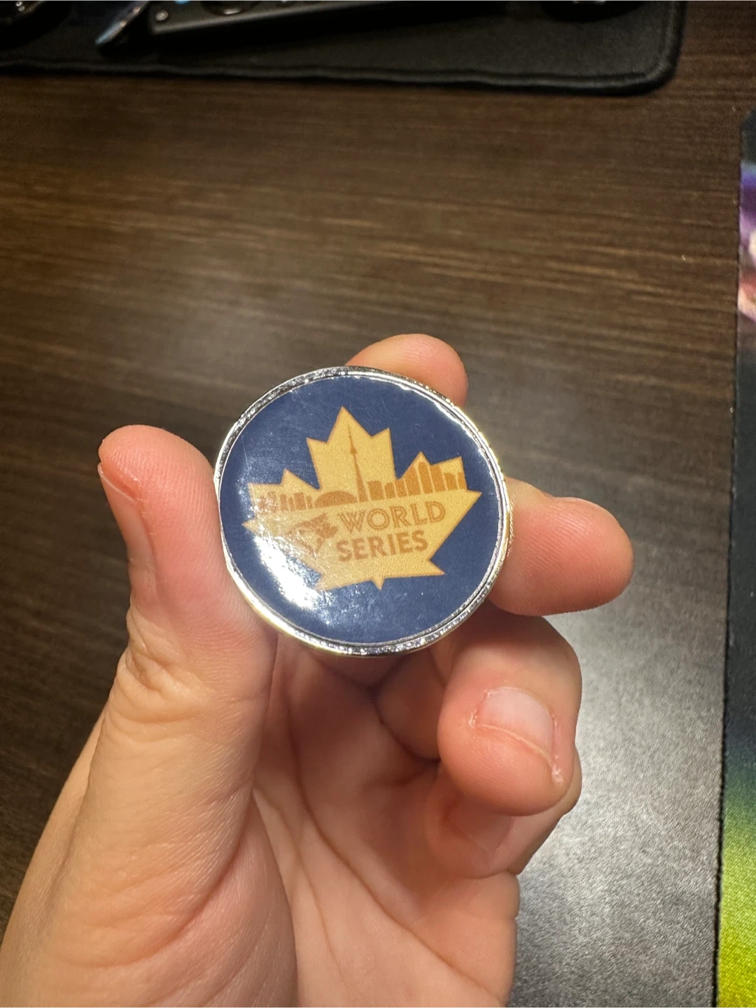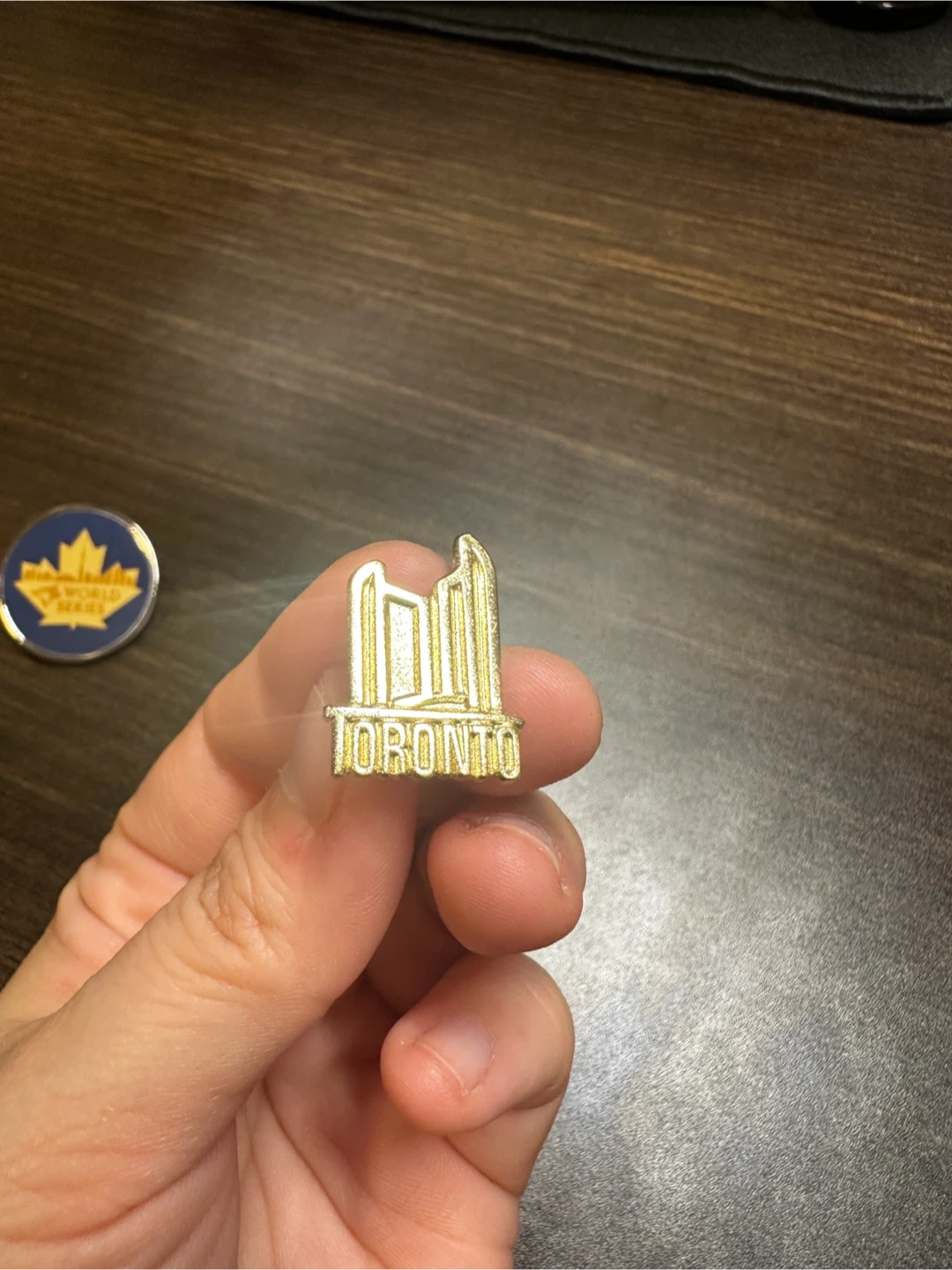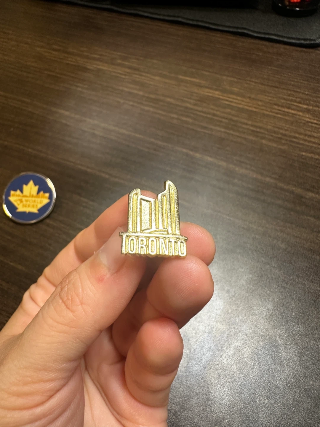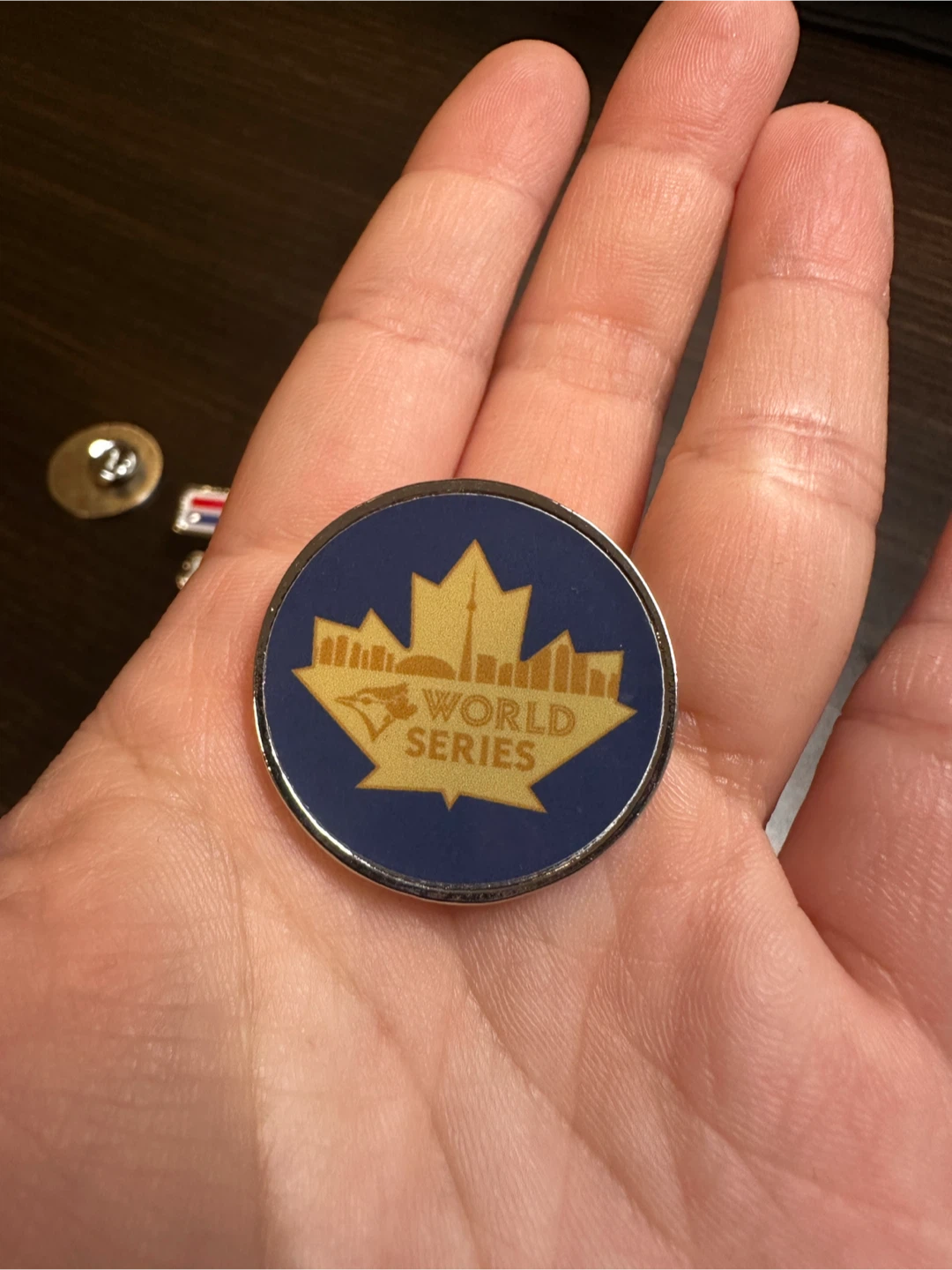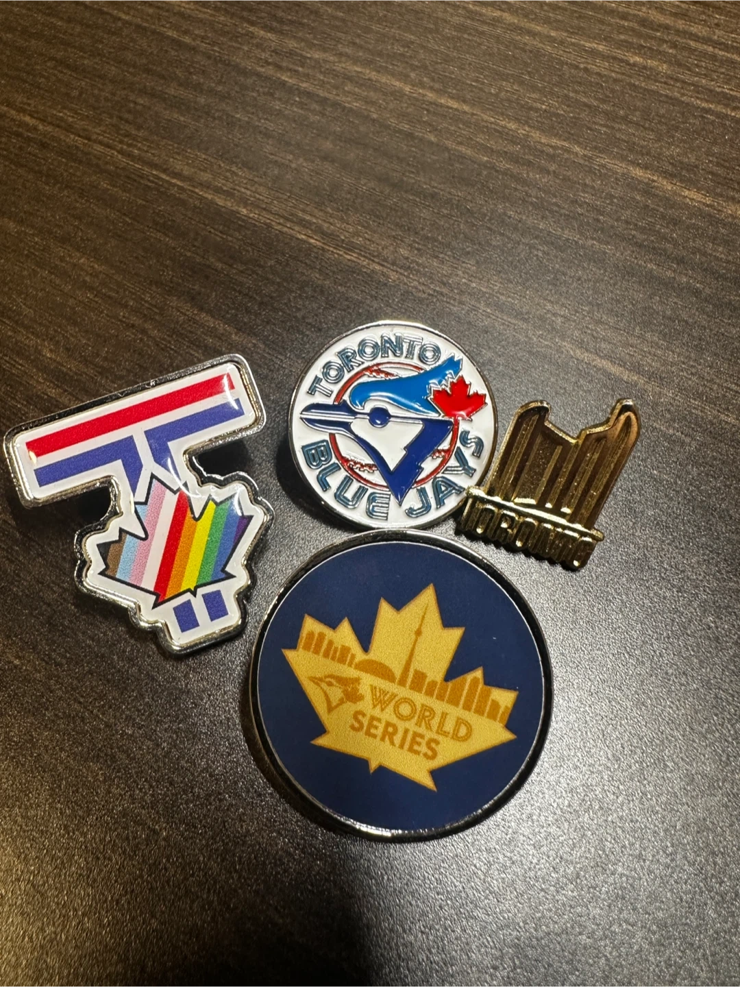 These pins are specialty items. The World Series pin is only given to employees. And I’m throwing in some other pins in there as a freebie. The golden Toronto pin is also a rare item. The city doesn’t give them out anymore. I don’t really wear pins so I wanna sell them to a fan or someone who likes pins.