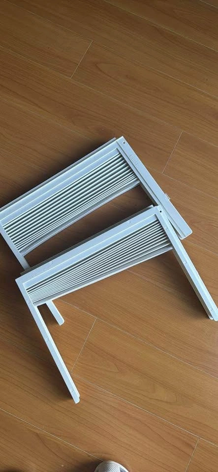 Used lightly, works perfectly. With remote. The photos are for display purposes only. It needs to be installed into the window opening with mounting brackets (included in the price) to create a tight fit.