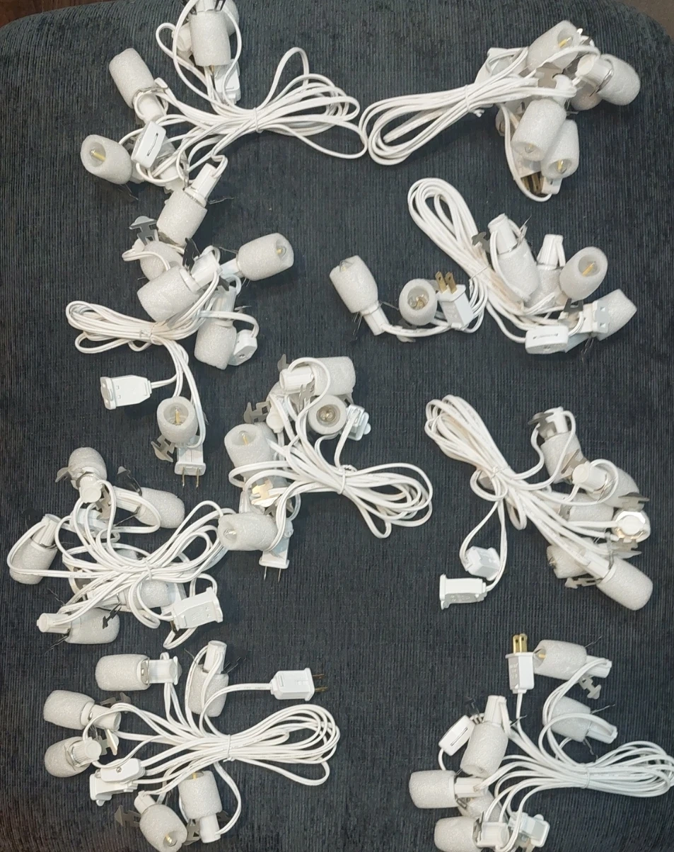 I'm selling a brand new Aurelema set of 9 accessory cords, each equipped with 6 LED C7 light bulbs! These cords feature a switch socket lamp and are perfect as replacement light bulbs or village accessories for Christmas holiday crafts. The original price was $125.43 and they come in the original box