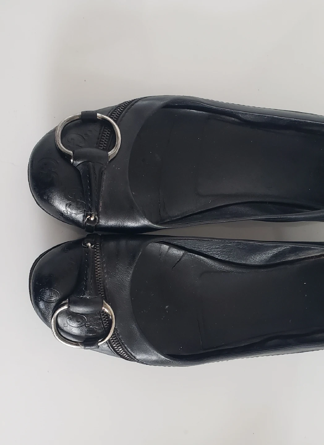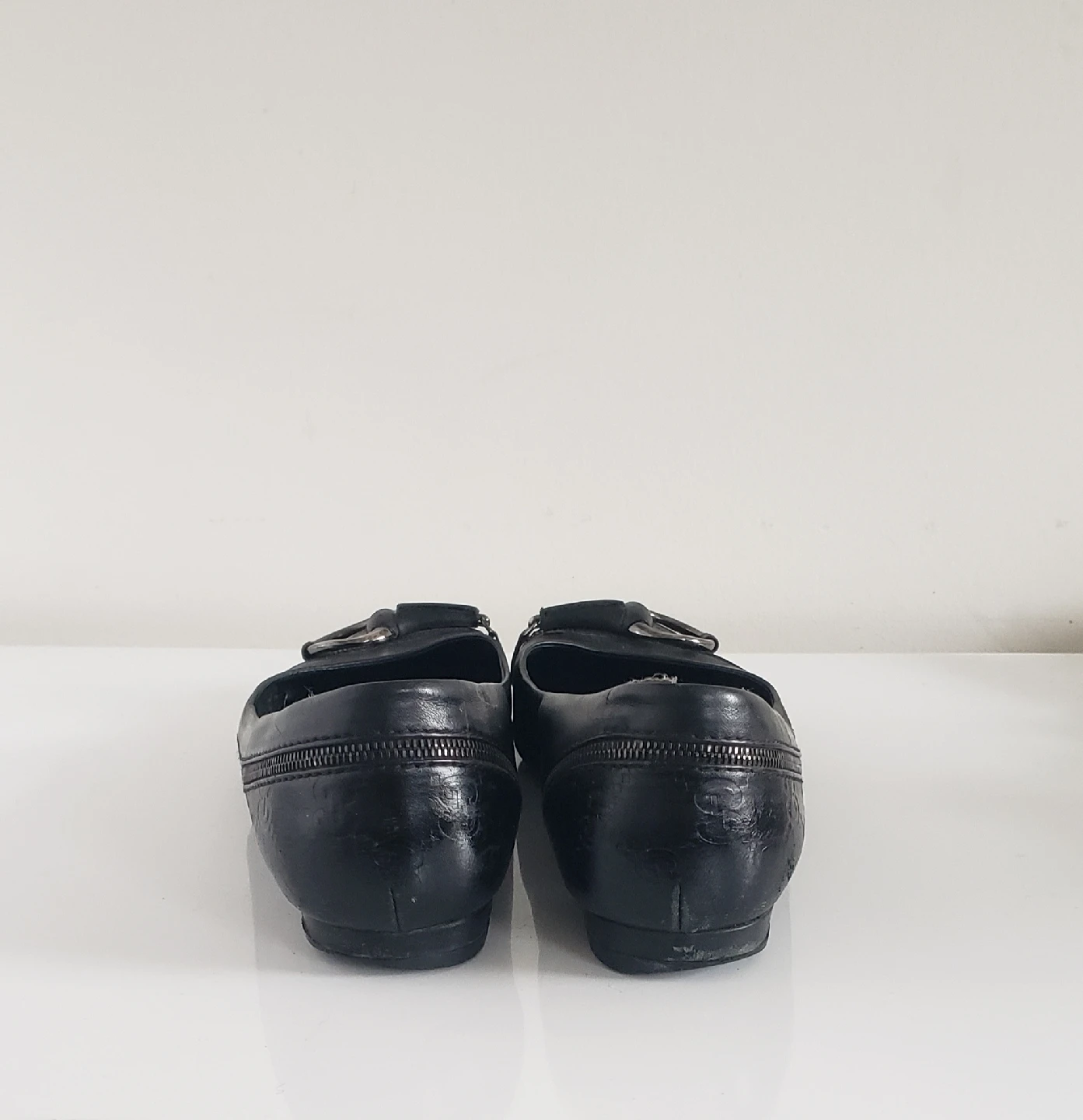 Gucci Black Monogram Leather Ballet Flats w Dustbag