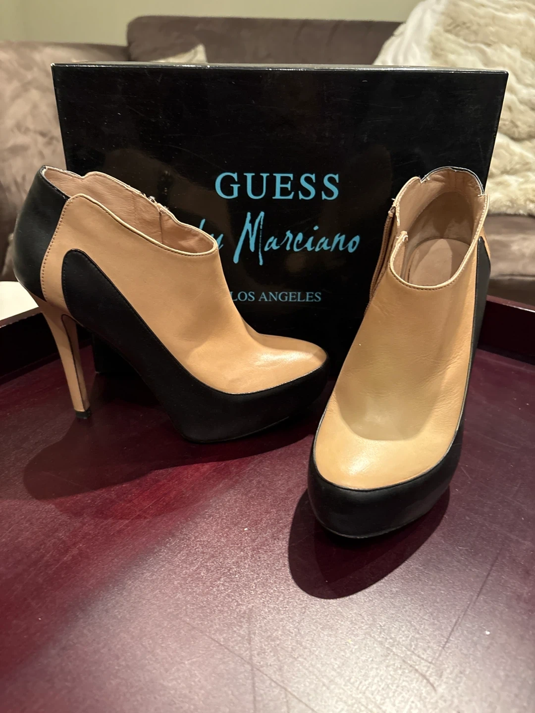 Selling a pair of Guess by Marciano ankle boots. They are a size 6.5 and come with the original box. They are in great condition and ready for a new home!