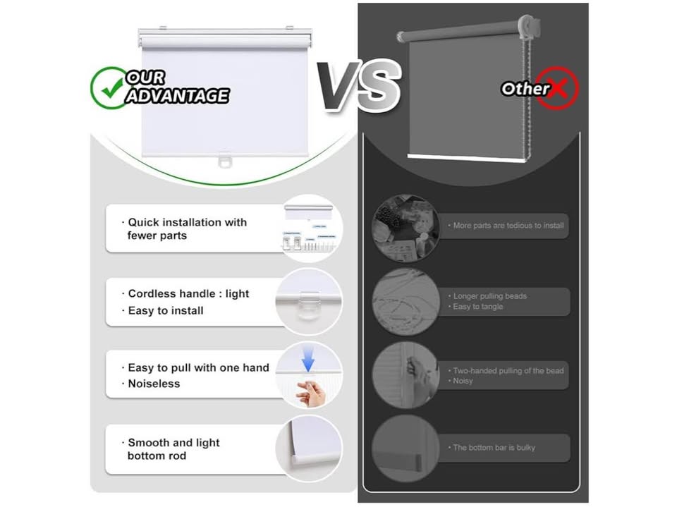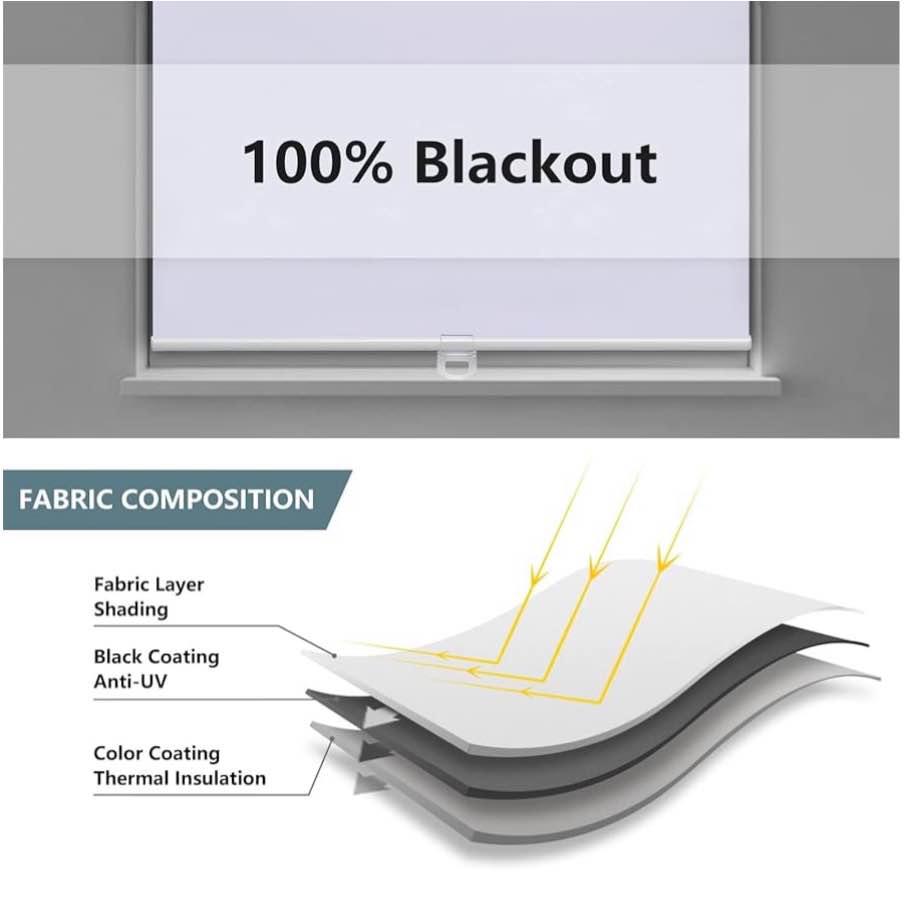 Brand new Cordless Roller Shades Blackout Blinds for Windows Room Darkening Rolled Up Shades with Spring System, UV Protection Window Shades Door Blinds for Home and Office