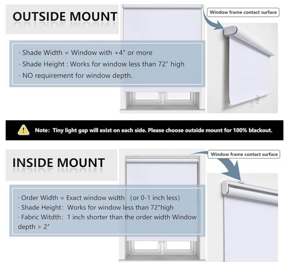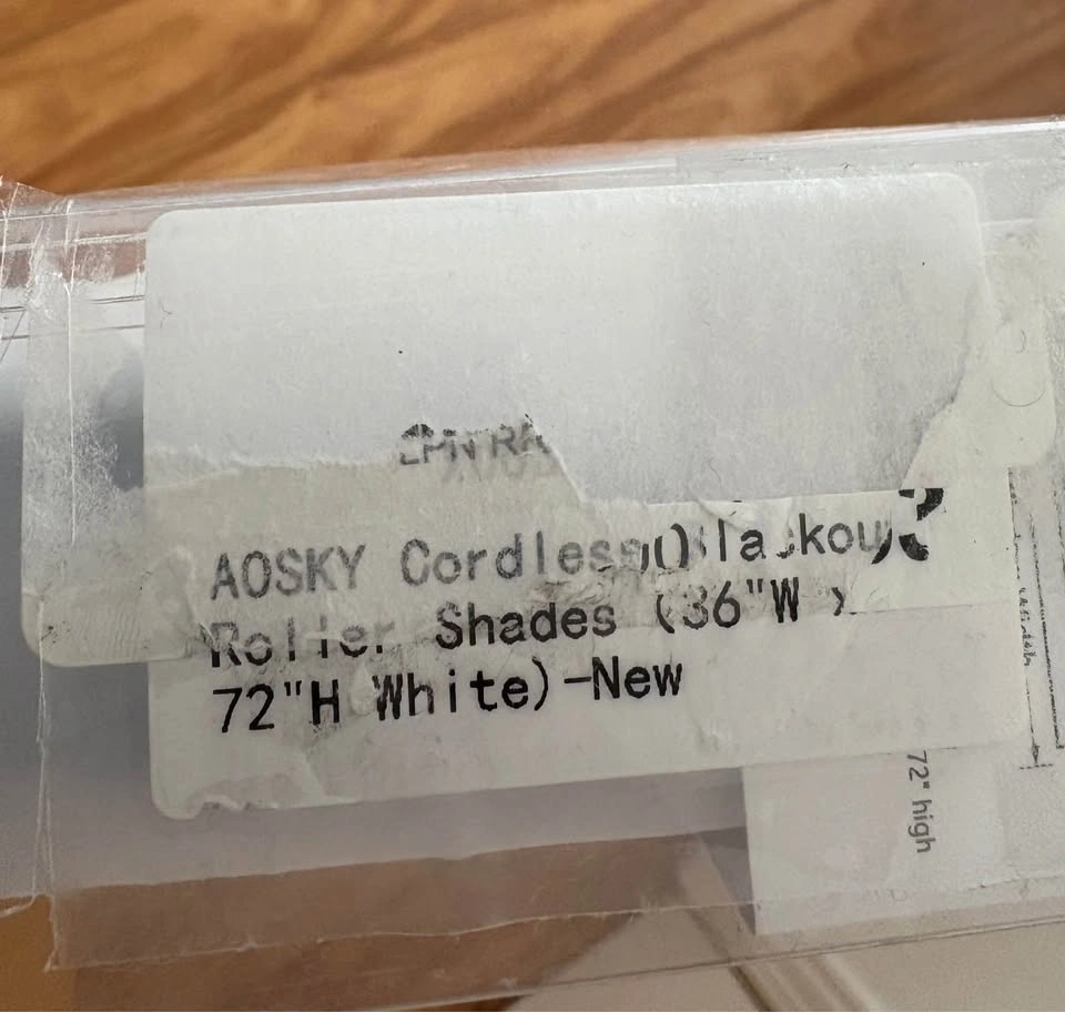 Brand new Cordless Roller Shades Blackout-36.5" W x 72" H- White