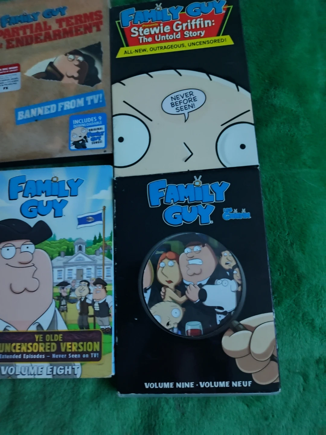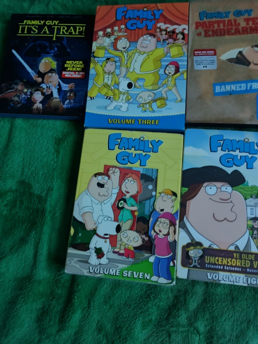 Selling a collection of Family Guy DVDs! Includes volumes 3, 7, 8, 9, It's a Trap, Partial Terms of Endearment, and Stewie Griffin: The Untold Story