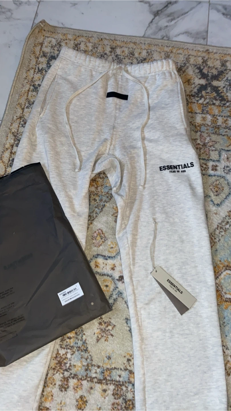 Selling a pair of Essentials Fear of God sweatpants in oatmeal colour! They're in great condition and come with the original packaging