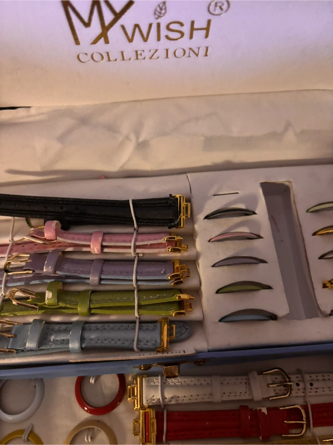 Selling a My Wish Collezioni watch band set! It comes in a cute box and includes a variety of colourful bands and bezels so you can customize your watch to match your outfit