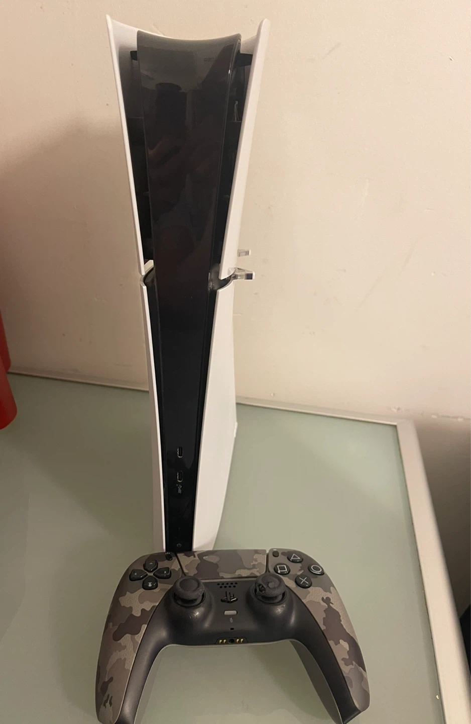 PS5 Slim Digital Edition comes with controller, HDMI cable, power cable and 2 mini stands. The rubber on controller is a bit tear but doesn't have drift or any issues.