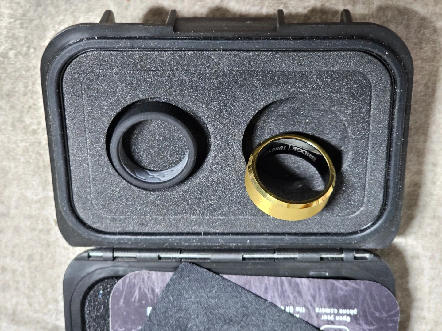 Selling The Ridge Tungsten Ring For Men - Mens Wedding Band - Strong, Durable, and Scratch-Resistant Beveled Ring With Silicone Band. They are size 8.5 and come in their original box. The box also includes a cloth for cleaning the rings. Great for anyone looking for stylish and durable rings!