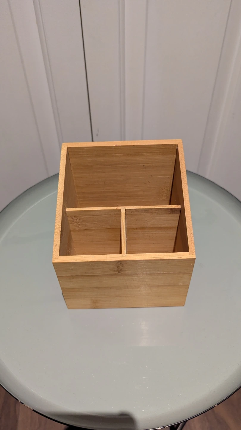 Selling a handy bamboo desk organizer! It's perfect for keeping your pens, pencils, and other small items neat and tidy. It measures approximately 6 inches in length and 4 inches in height.