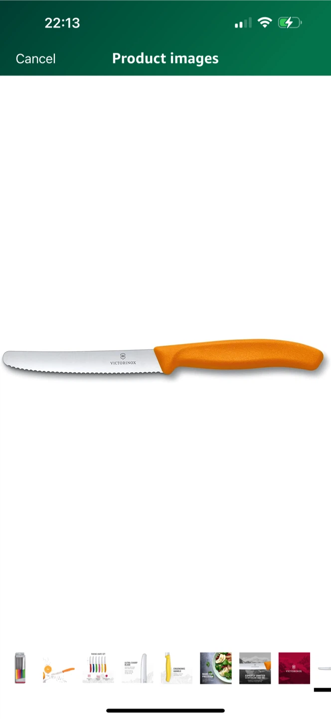 Looking to upgrade your kitchen knives? This Victorinox serrated steak knife is perfect for effortlessly cutting through steaks and other foods. It features an ergonomic, slip-resistant orange handle for a comfortable and secure grip. Expertly crafted in Switzerland since 1884, Victorinox knives are designed for professionals who use knives all day, every day