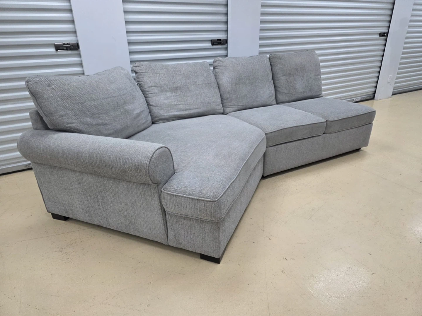 Selling a comfy grey sectional sofa! It's in great shape and ready for a new home. Perfect for lounging and movie nights with the family good condition home delivery available