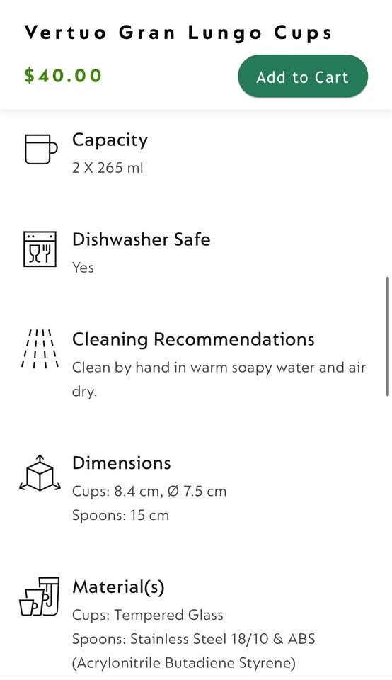 Selling a set of the nespresso vertou gran lungo set with spoons (set has 2 mugs + 2 spoons)