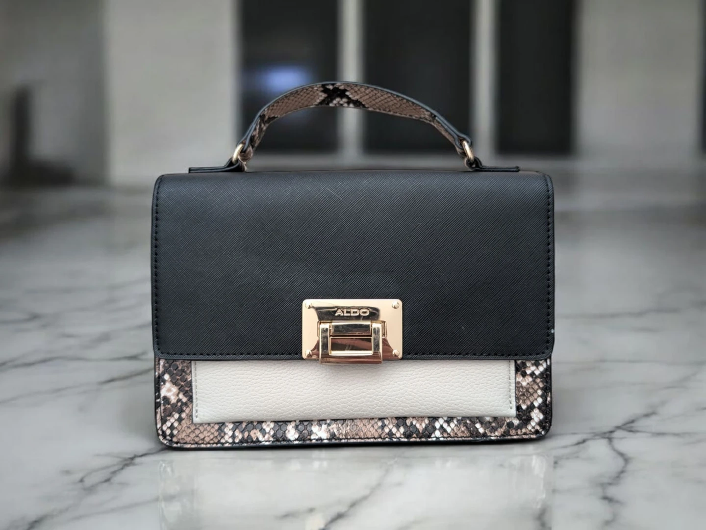 Aldo Black & Snakeskin Print Handbag