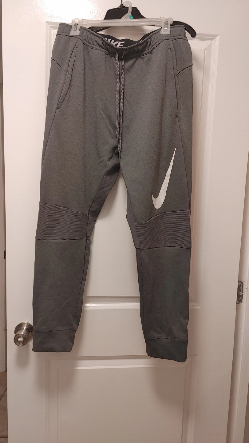 68Selling a pair of Nike sweatpants in grey. They're in good condition and size large. Perfect for workouts or just lounging around!