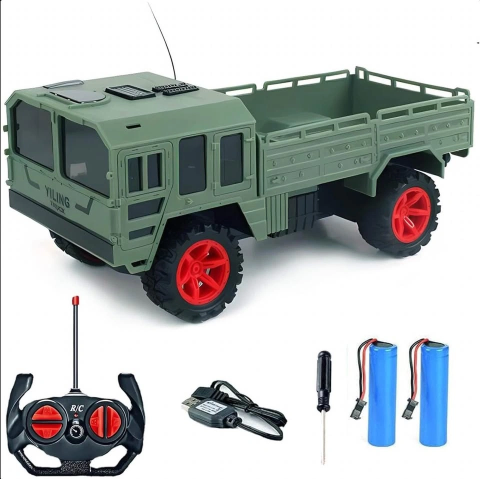 - Military Design: 1:20 scale RC transport truck built with rugged army-inspired style.