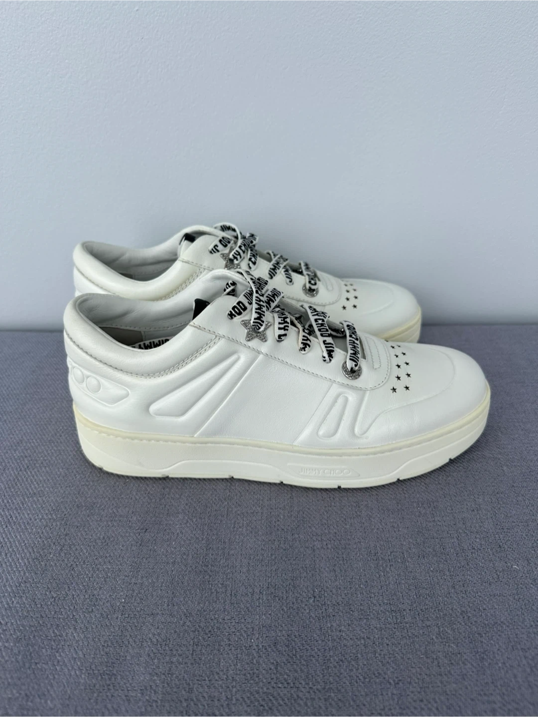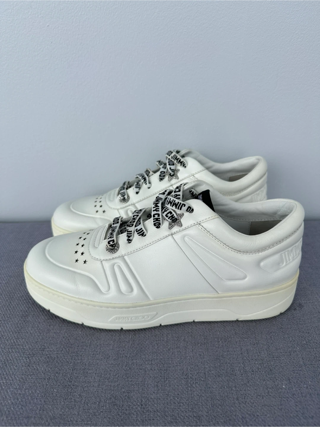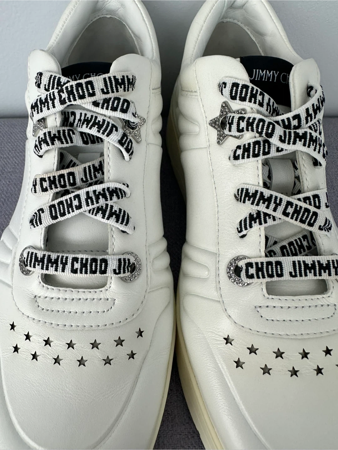 These Jimmy Choo Platform sneakers feature star details for the shoe laces. These sneakers give you comfort and height. They are like new and would compliment any wardrobe!