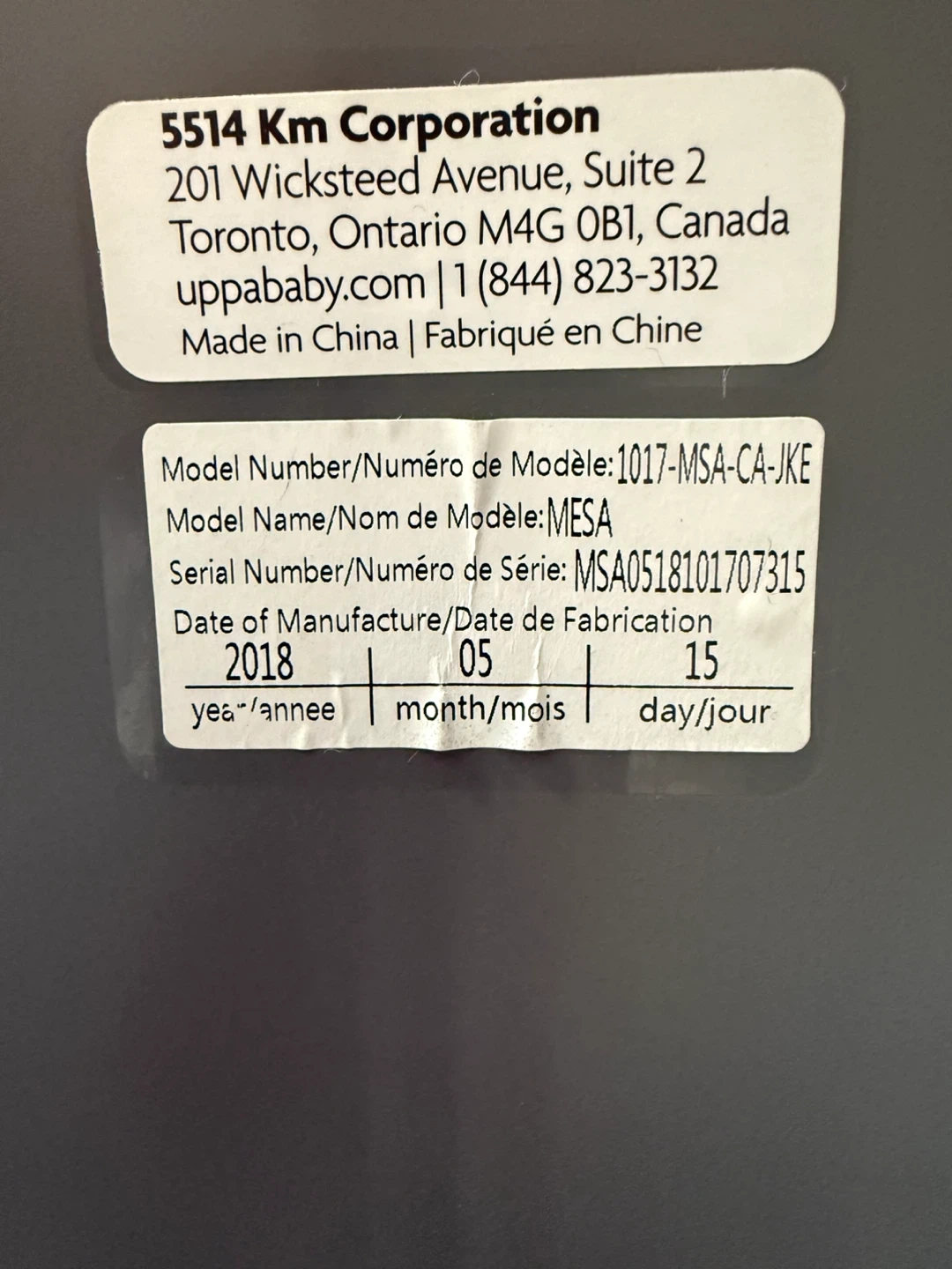 Manufactured, May 2018.