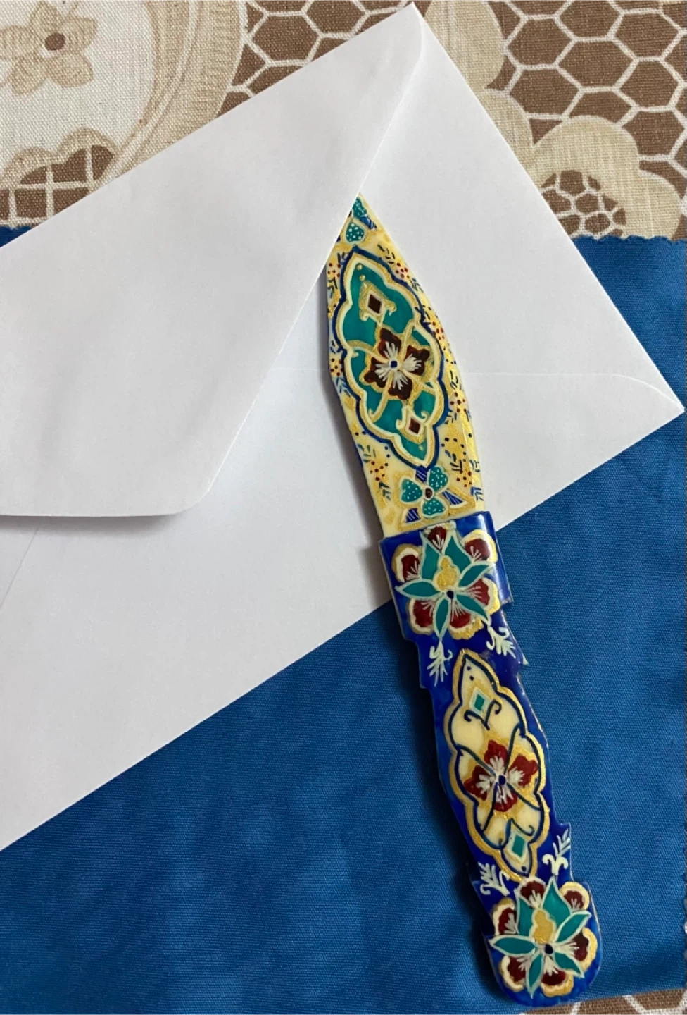 Selling a decorative Persian letter opener made from camel bone with a unique floral design. It's in great condition and would make a beautiful addition to any collection or a unique gift!
