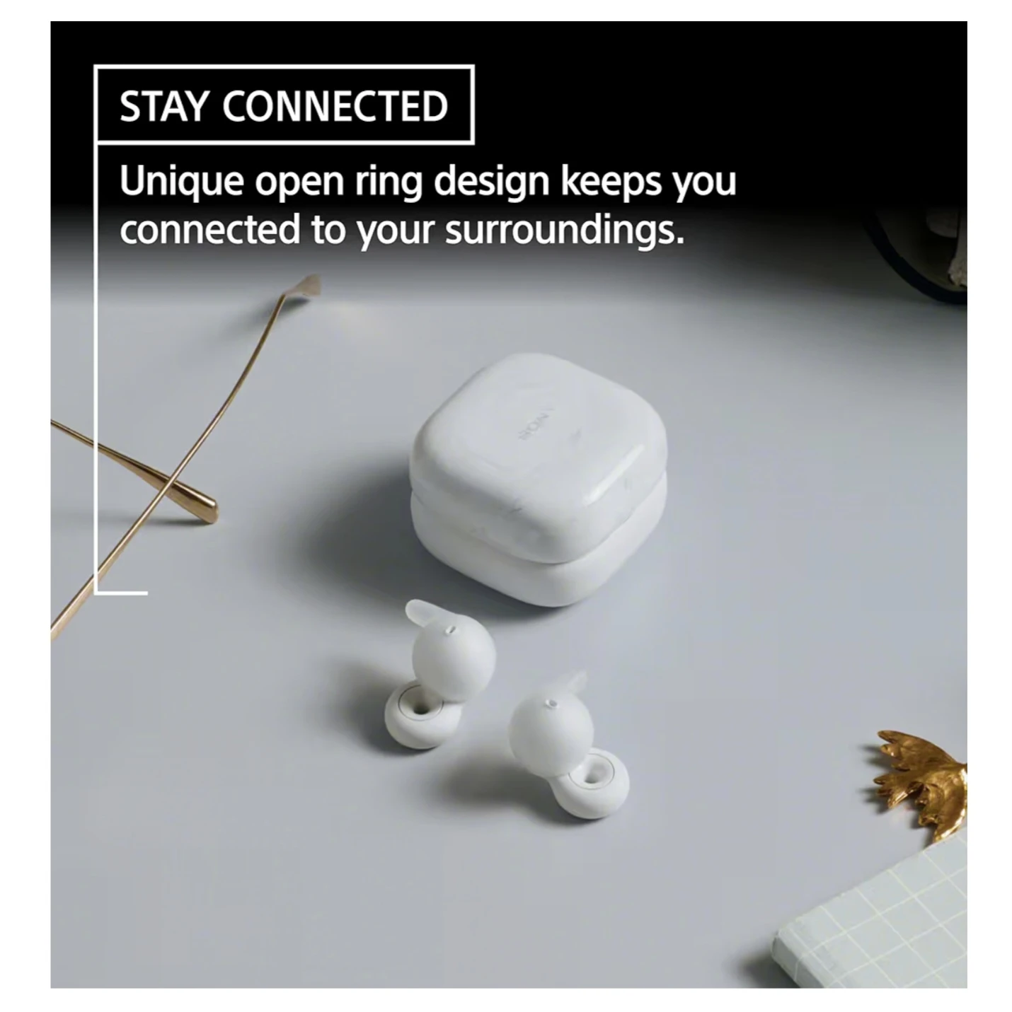 Selling a pair of new Sony LinkBuds in white. These truly wireless earbuds feature an open-ring design, allowing you to stay connected to your surroundings while enjoying ambient sounds. They also have newly developed air-fitting supporters for all-day comfort. Comes with the original box