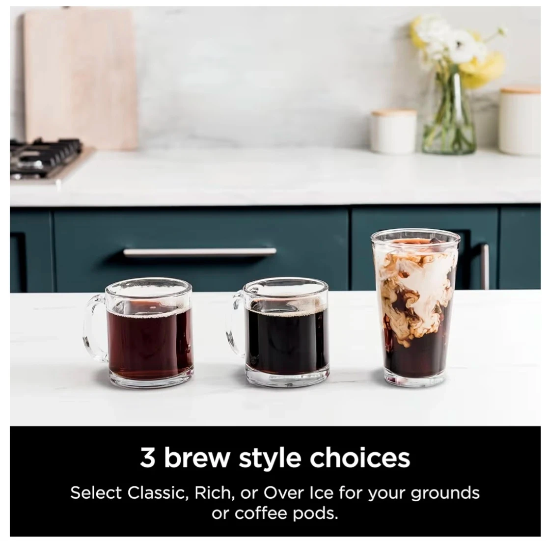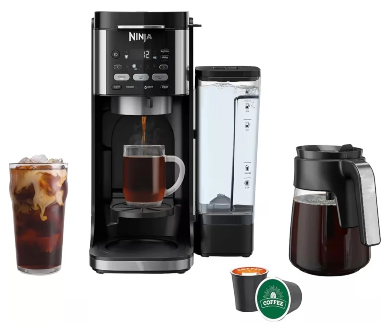 Ninja I Drip Coffee Maker I DualBrew Pro Hot & Iced Coffee 1 Compatible with K-Cup Pods | 3 Brew styles. Enjoy your favourite coffee with this Ninja single-serve coffee maker! It's perfect for brewing both grounds and pods, You can select from classic, rich, or over-ice brew styles to suit your taste.