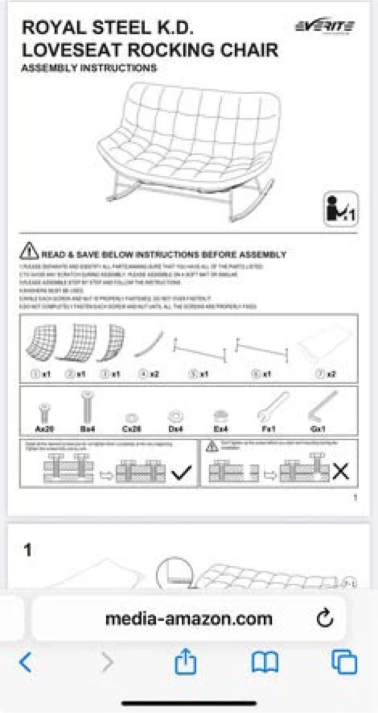 Brand new and not assembled Steel Outdoor Loveseat Rocker Chair