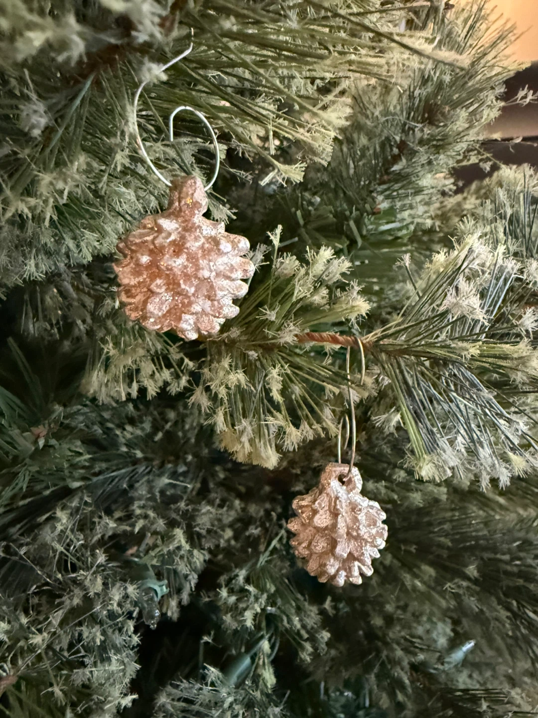 Tiny gold sparkle pinecones ornaments