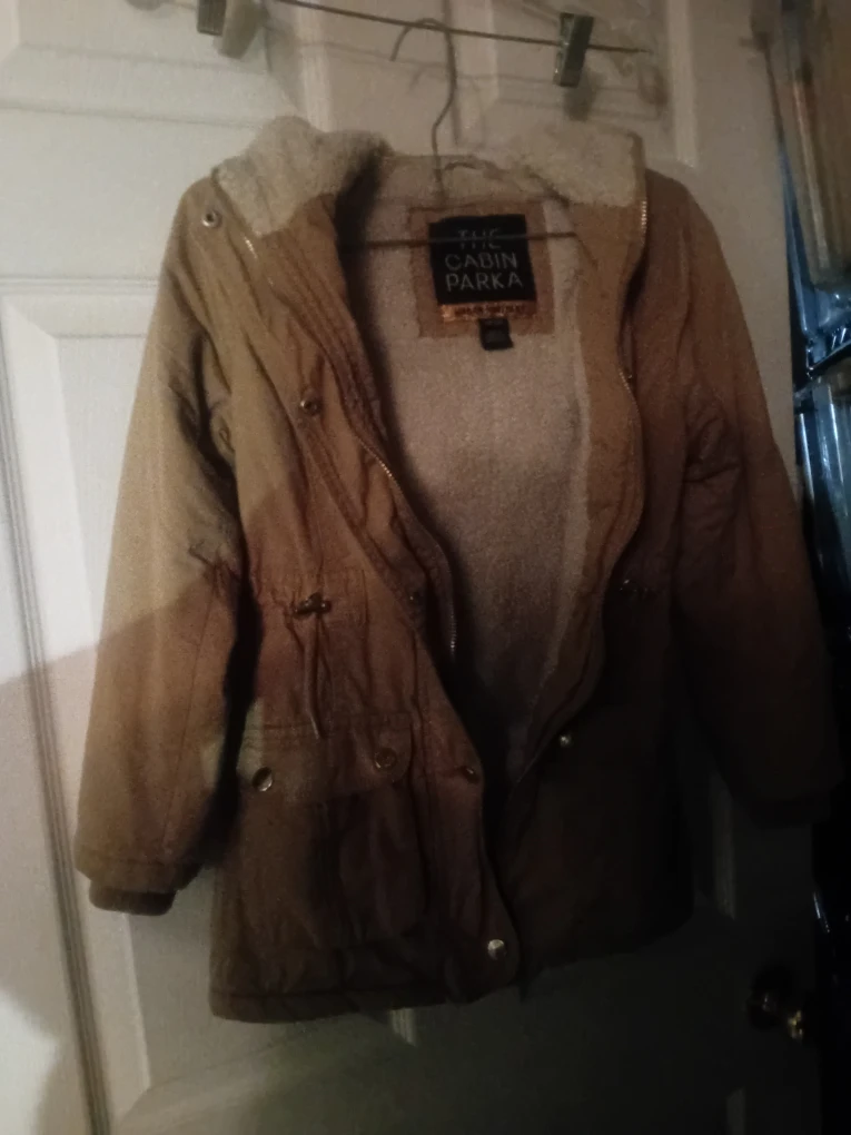 Selling a cozy Urban Heritage Cabin Parka in size small! It's a great jacket for cooler weather, featuring a sherpa-lined hood and a stylish design. Perfect for staying warm and looking good!