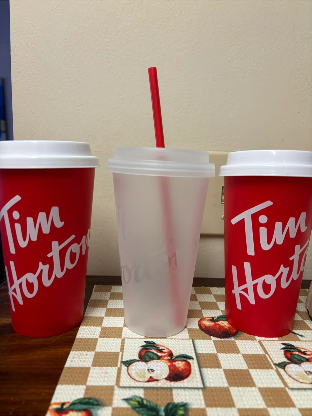 Selling three Tim Hortons reusable cups.
