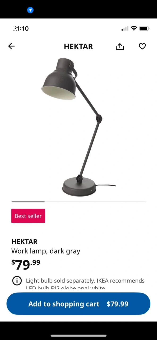 618$5 extra for bulb. Selling a dark gray IKEA Hektar work lamp. It's in great shape and ready to brighten up your space! Originally bought for $79.99. The package details are: - Height: 19 cm (7 ½ ") - Length: 42 cm (16 ¾ ") - Net weight: 2.84 kg (6 lb 4 oz) - Volume: 32.8 l (1.16 cu.ft) - Weight: 3.50 kg (7 lb 11 oz) - Width: 41 cm (16 ¼ ")