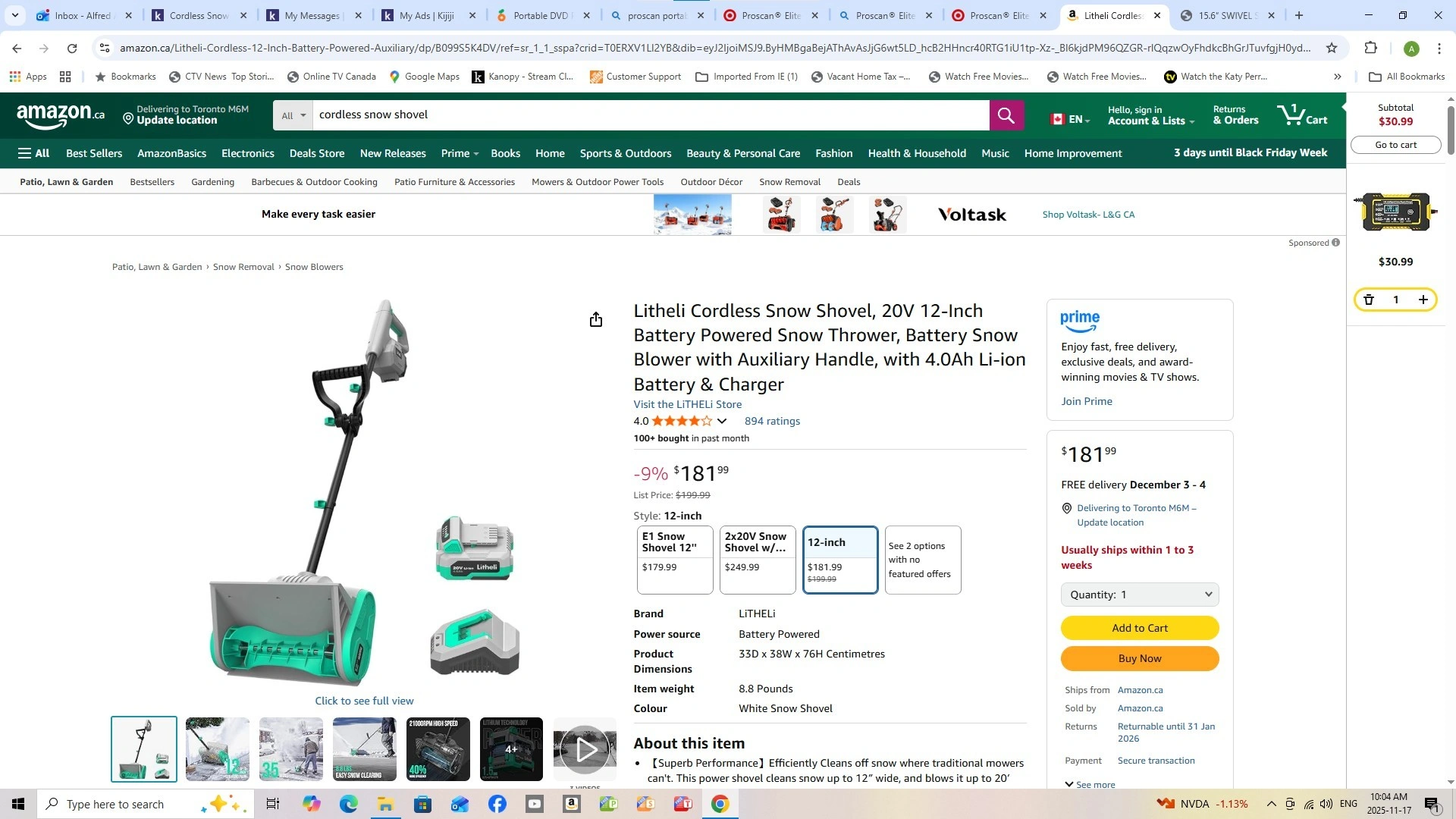 Cordless 20 Volt Snow Shovel, BRAND NEW