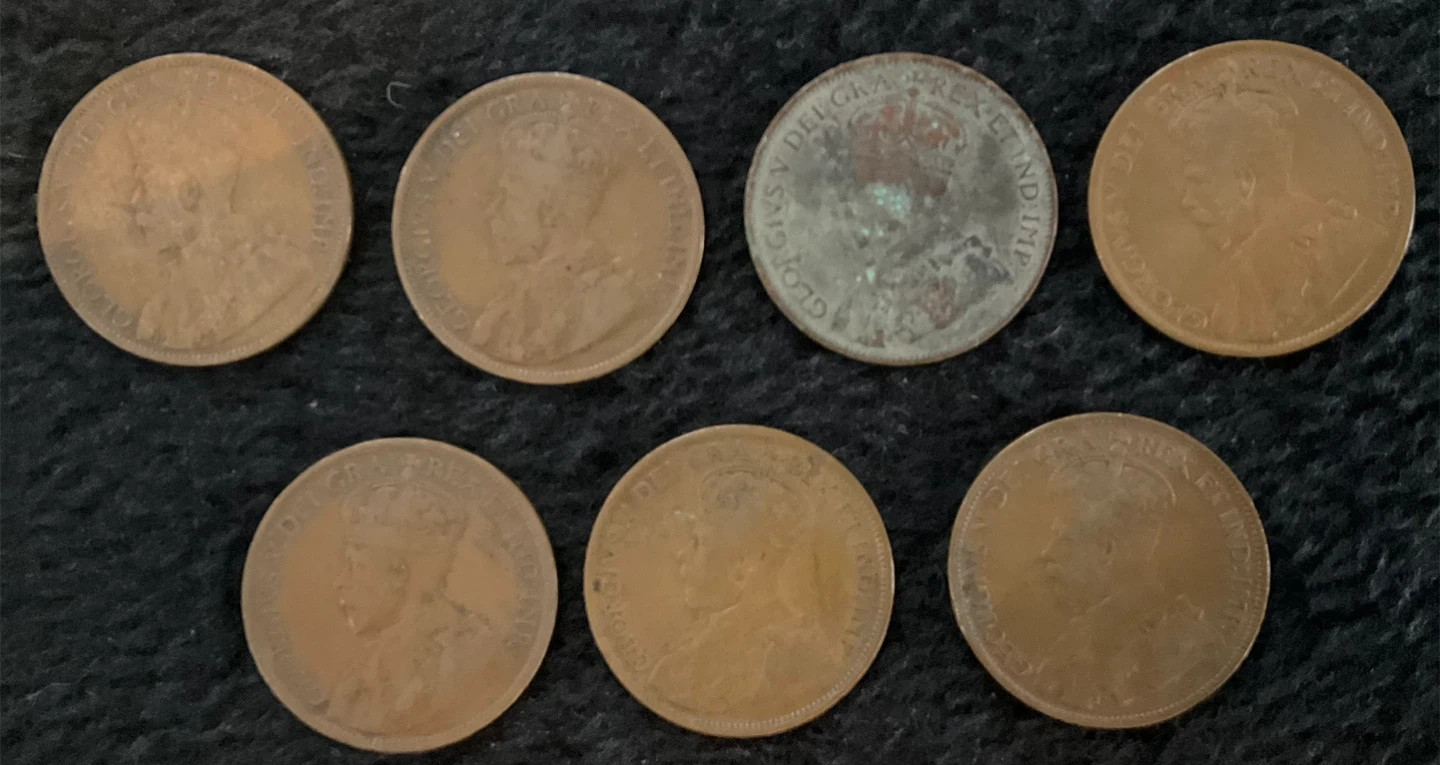 I'm selling a collection of seven Canadian one cent coins. The dates include 1912, 1913 x 2, 1916, 1919, 1920 x 2. All in various condition. Will not sell separately.