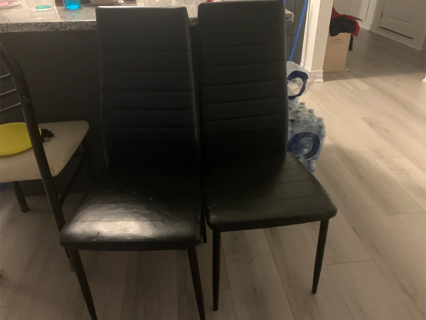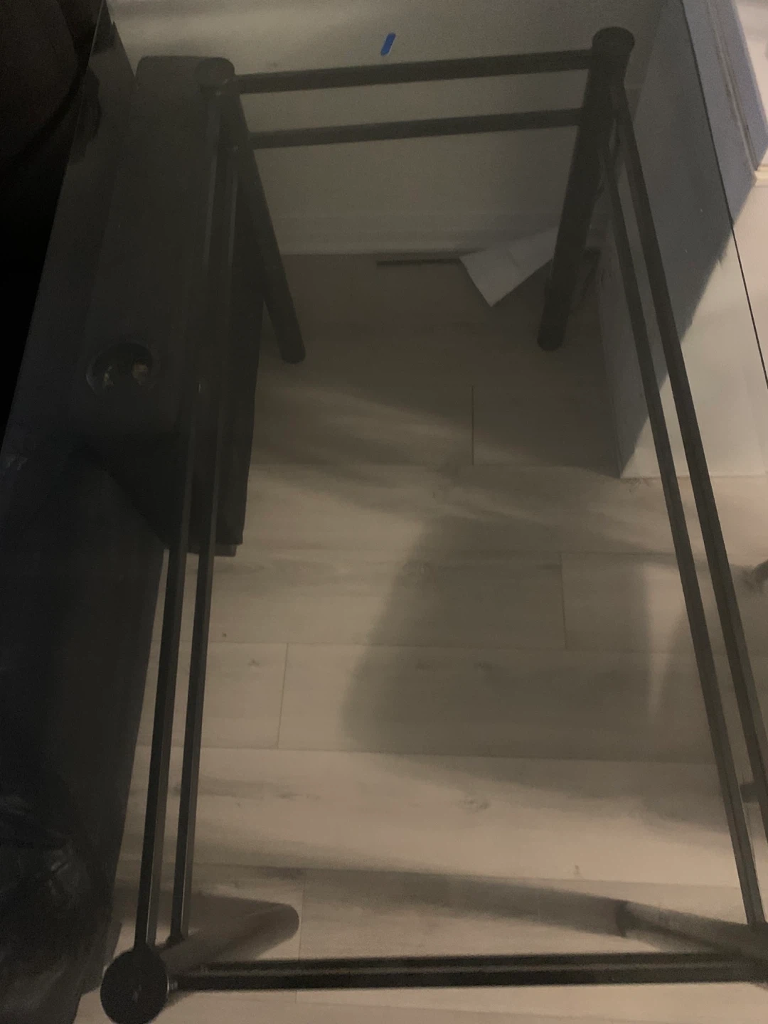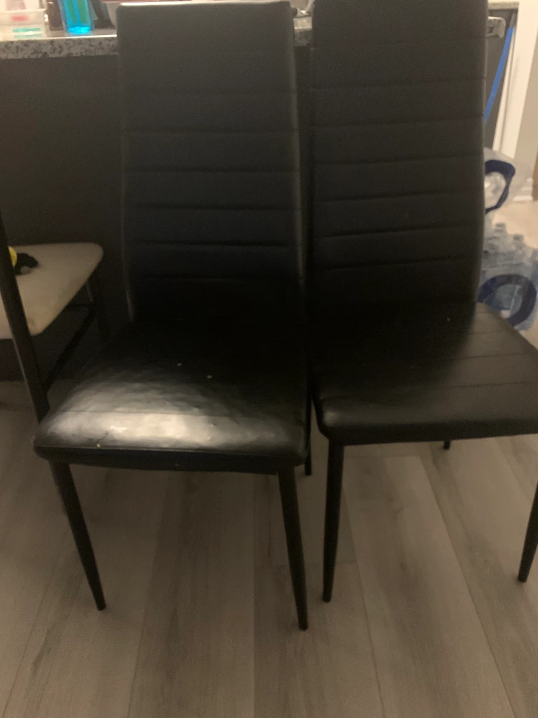 Selling a dining table with a glass top and four black chairs. The set is in good condition and ready to find a new home. Perfect for a small dining area or kitchen nook. If you're looking for a simple and functional dining set, this could be a great fit!