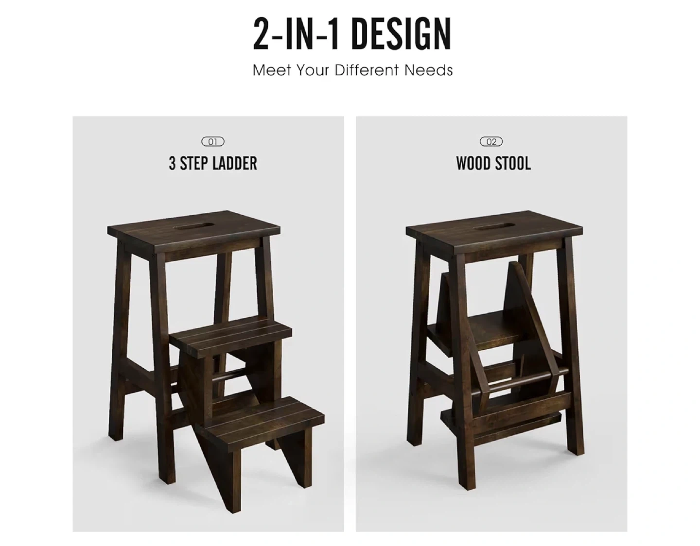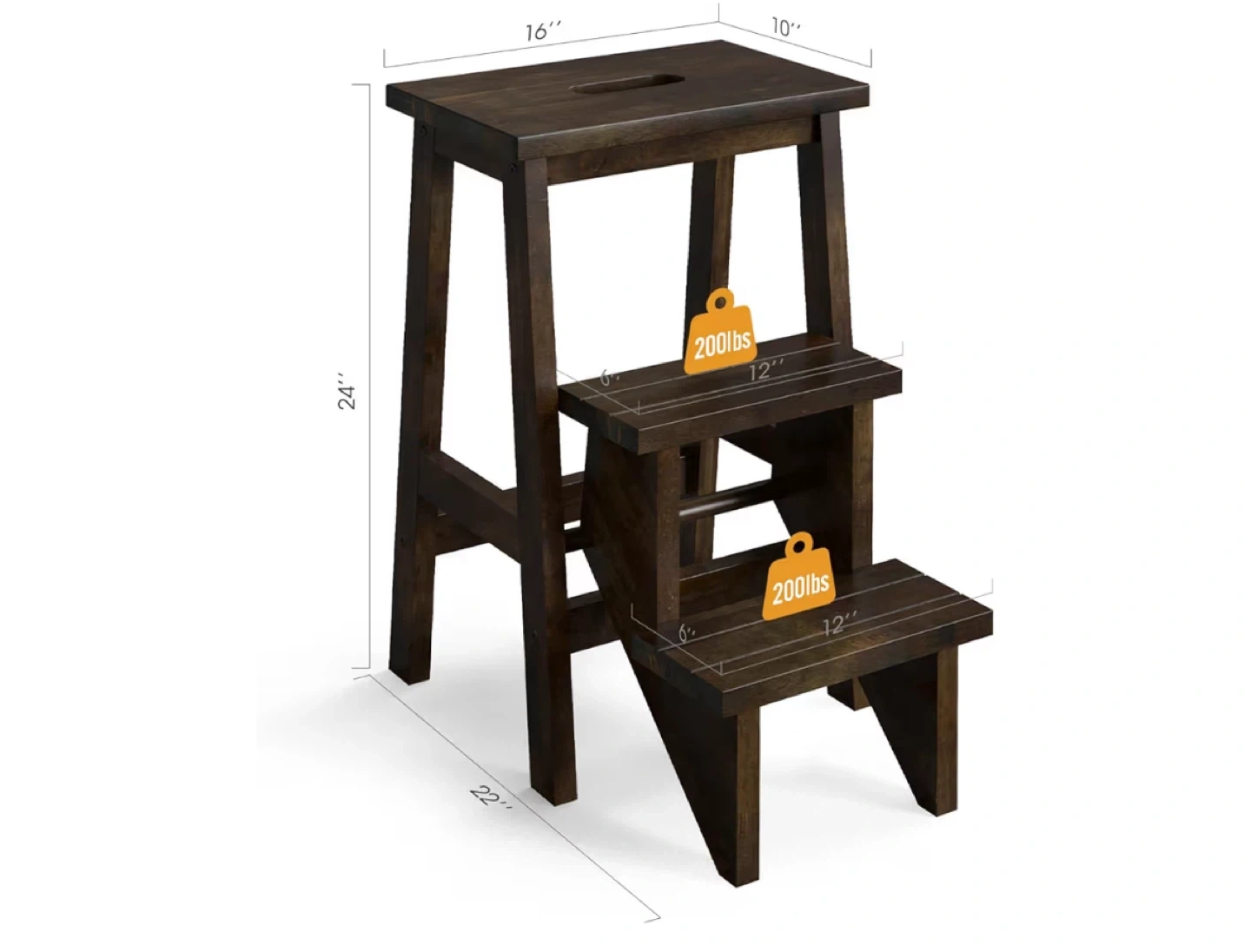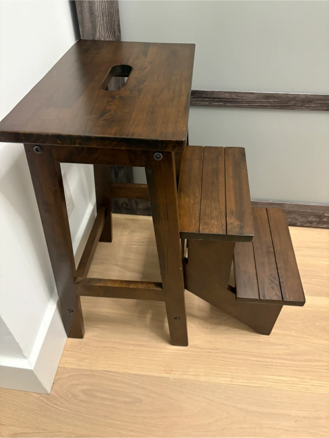 3 Tier Wood Folding Step Stool. Can be used as a stool for seating or a step stool/ladder.
