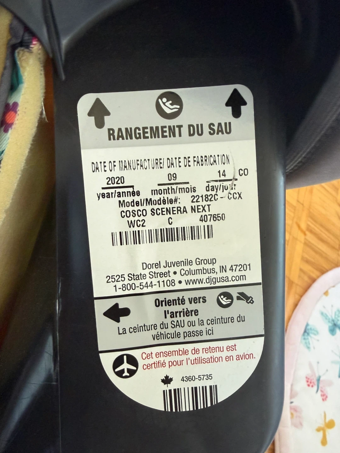 Selling a Cosco car seat with a cute floral pattern! It's forward-facing and suitable for children between 10-18 kg (22-40 lbs) and 86-102 cm (34-43 in) and at least 1 year old. Please note there are some tears on the seat fabric where the straps go through.