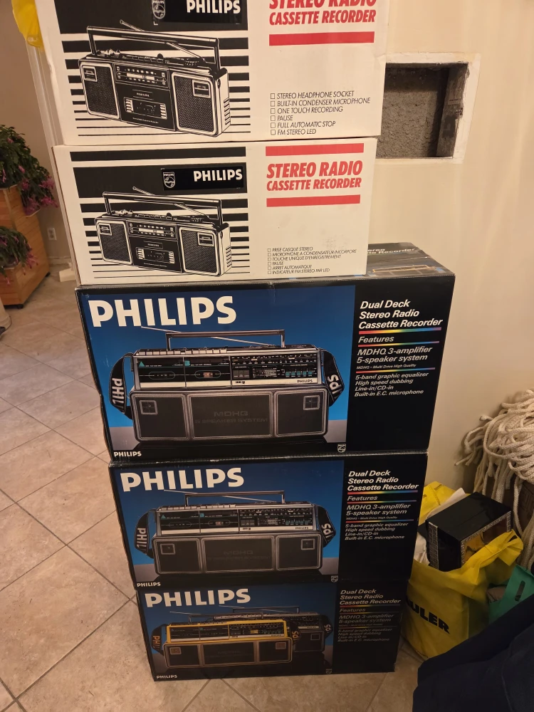Selling a Brand new in box Philips stereo radio recorder, model D8300/07R in black! This dual deck stereo radio cassette recorder features MDHQ 3-amplifier and a 5-speaker system. It also has a 6-band graphic equalizer and a built-in E.C. speaker system. The box is included!