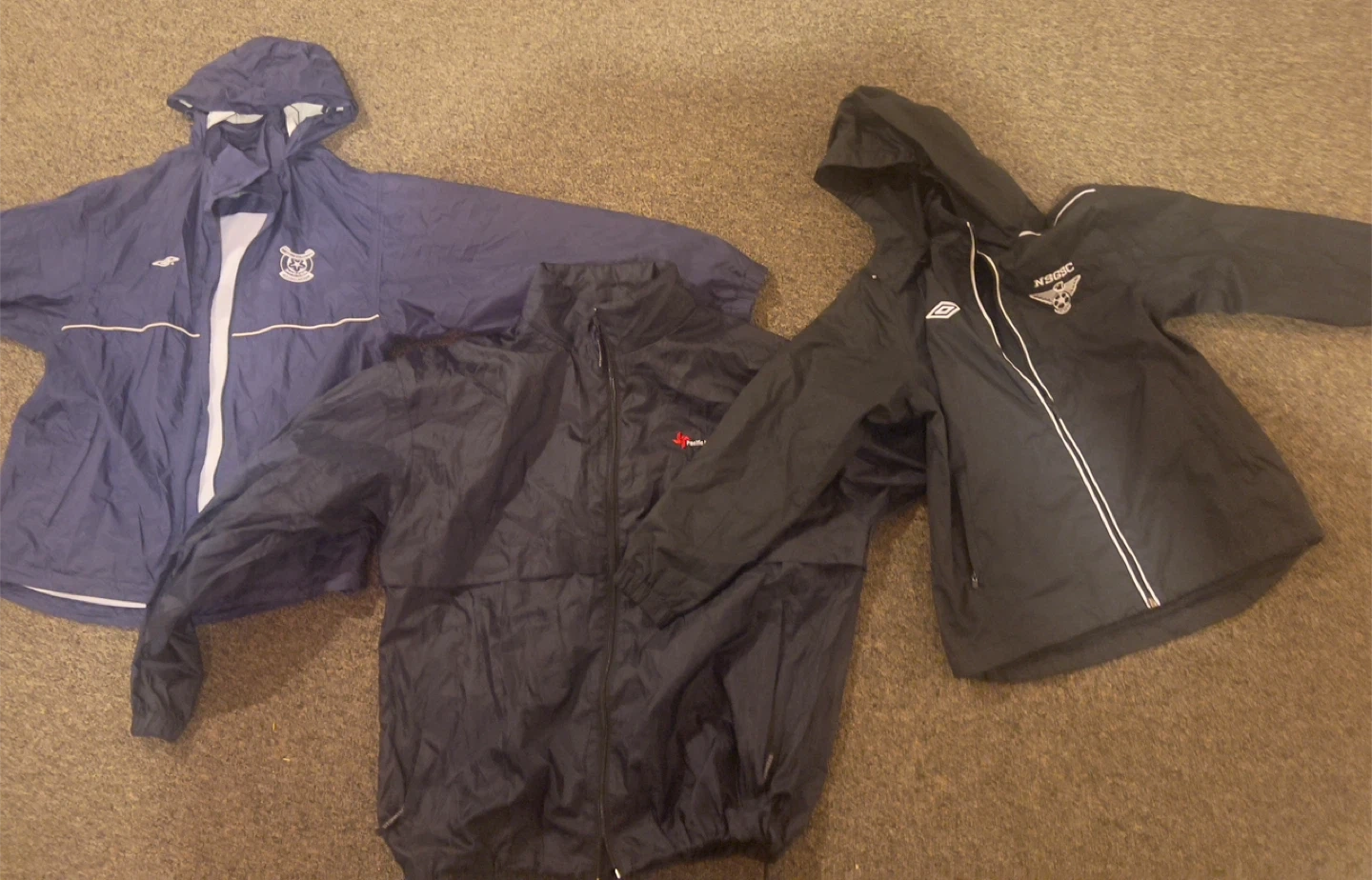 Selling a few rain jackets! There's a blue Umbro jacket, a black Pacific jacket, and another black Umbro jacket with the NSGSC logo, $5 each