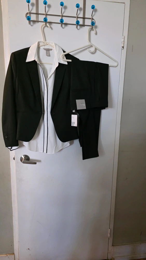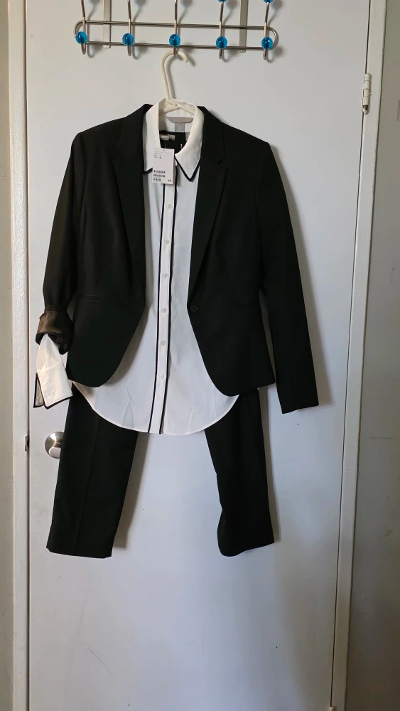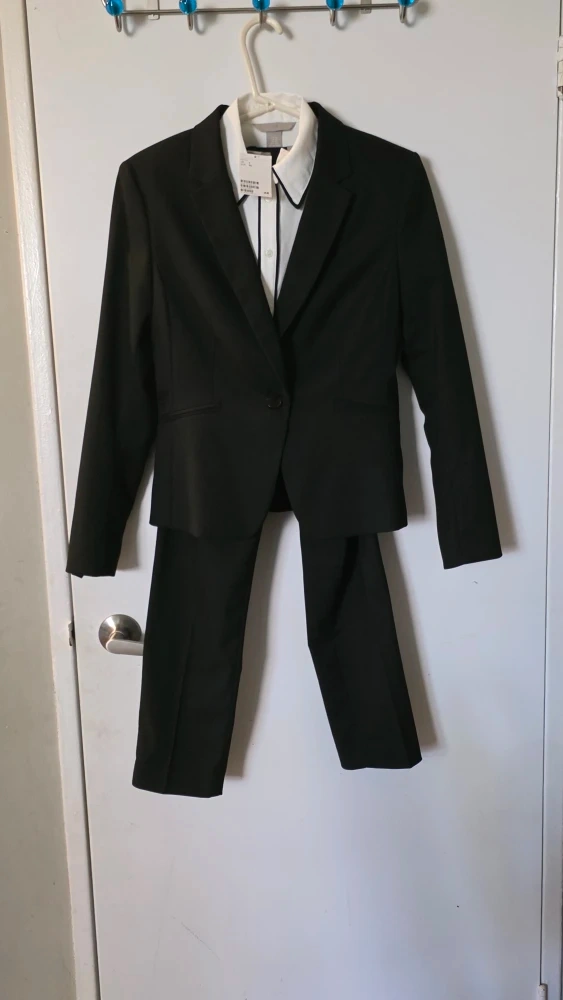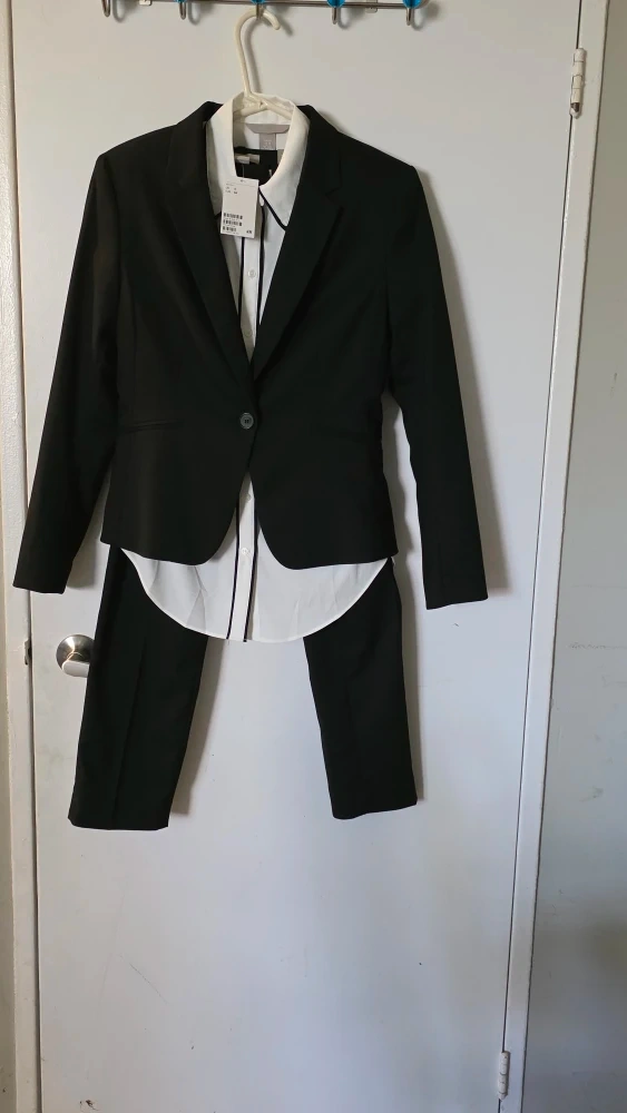 Selling a H&M black suit set in size US 4. Includes a blazer and matching pants. Perfect for work or a special occasion!