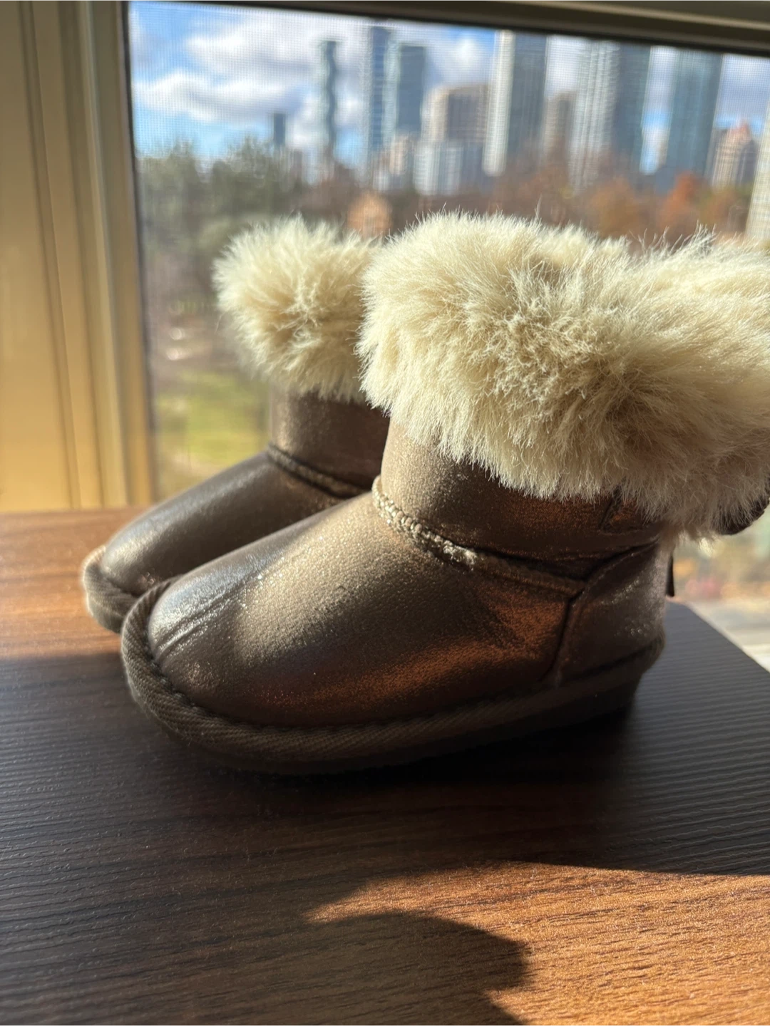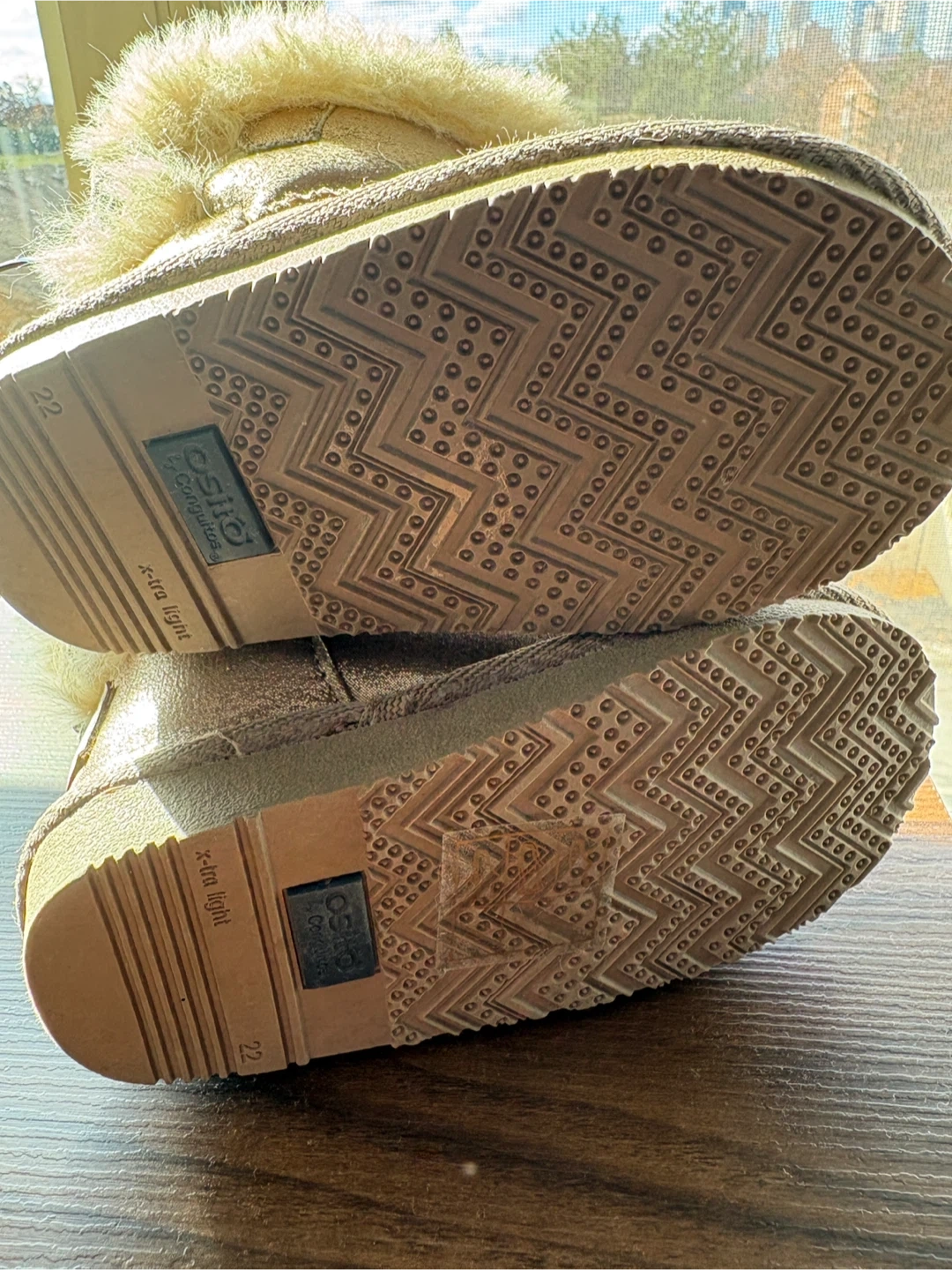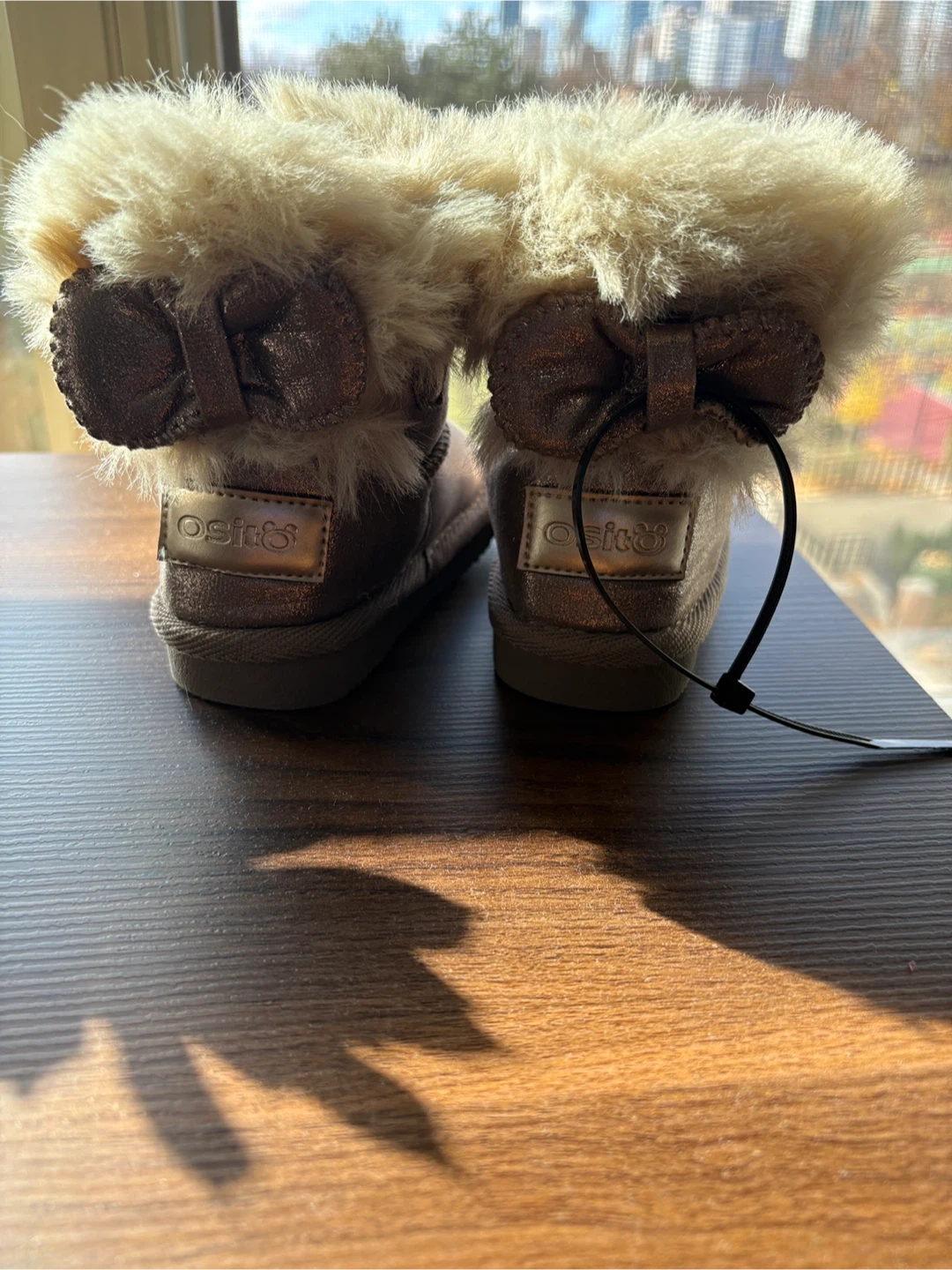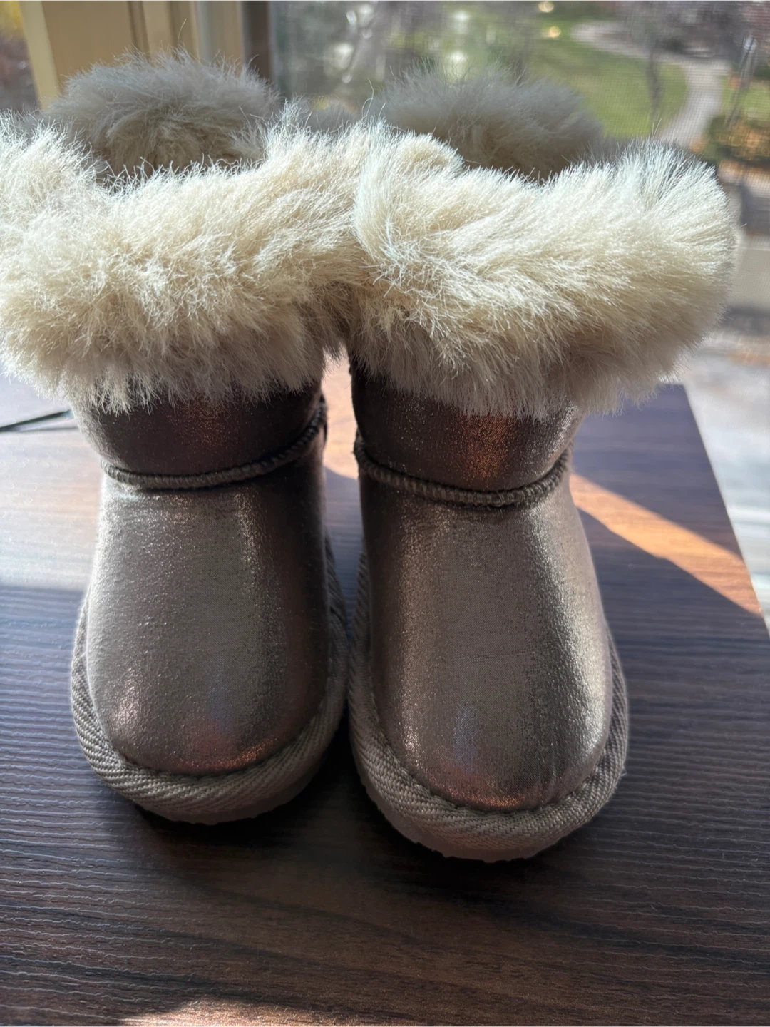 These adorable toddler boots are perfect for keeping little feet warm and stylish! They feature a cute bow detail on the back and a cozy faux fur trim. The soles are marked with size 22, which is a US size 6. Great for the colder months! never used them