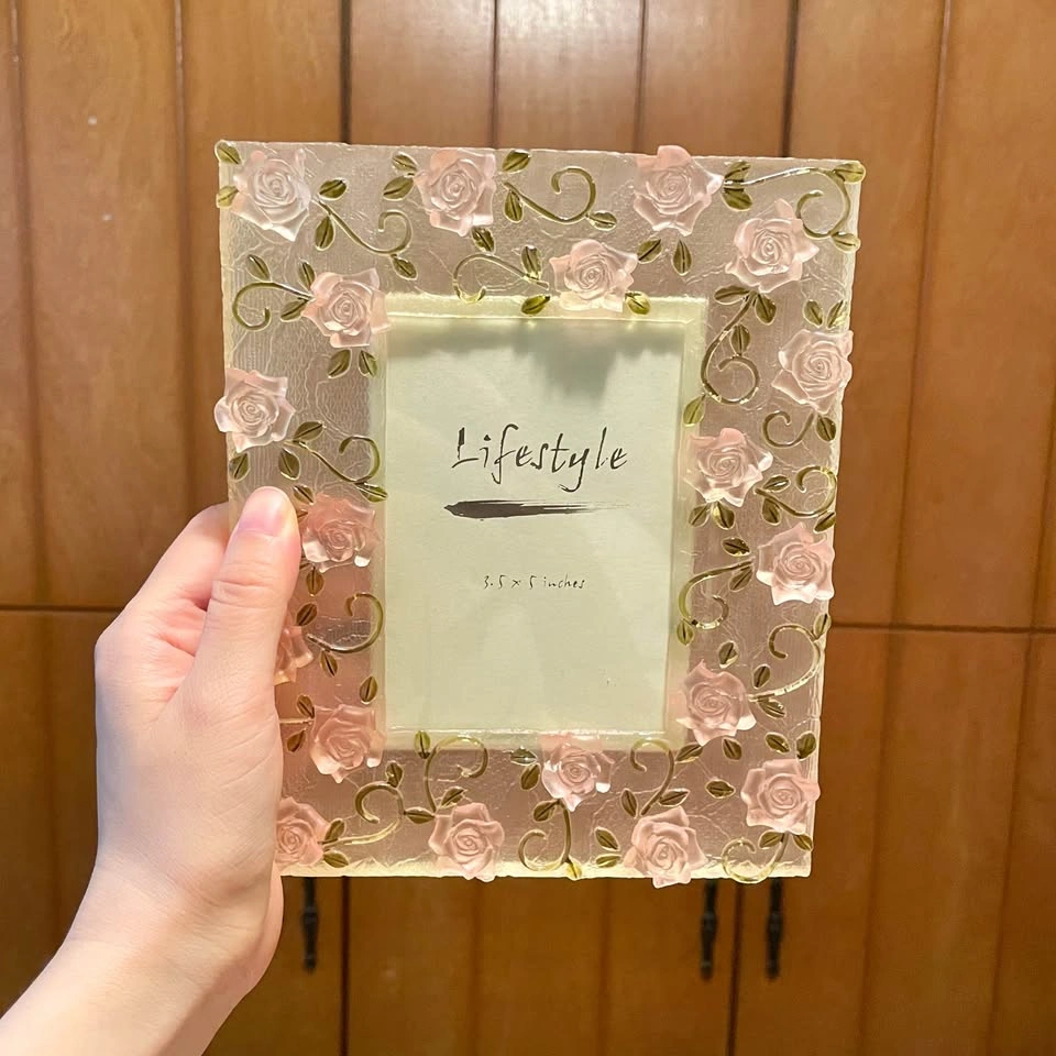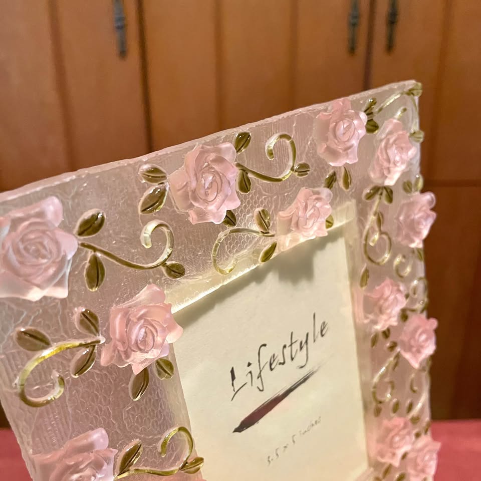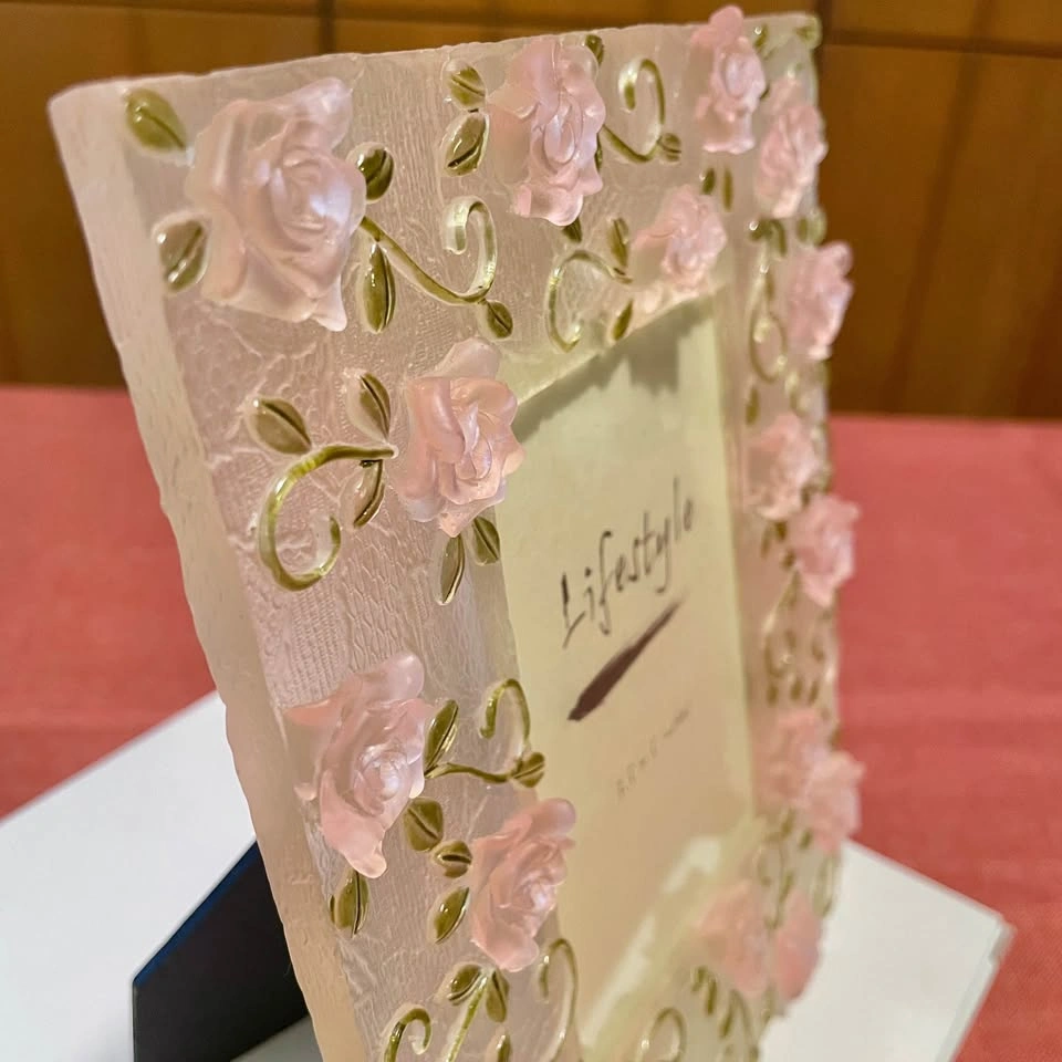 Enhance your home decor with the Pink Rose Photo Frame. This elegant frame features delicate pink roses, adding a touch of charm to any room.